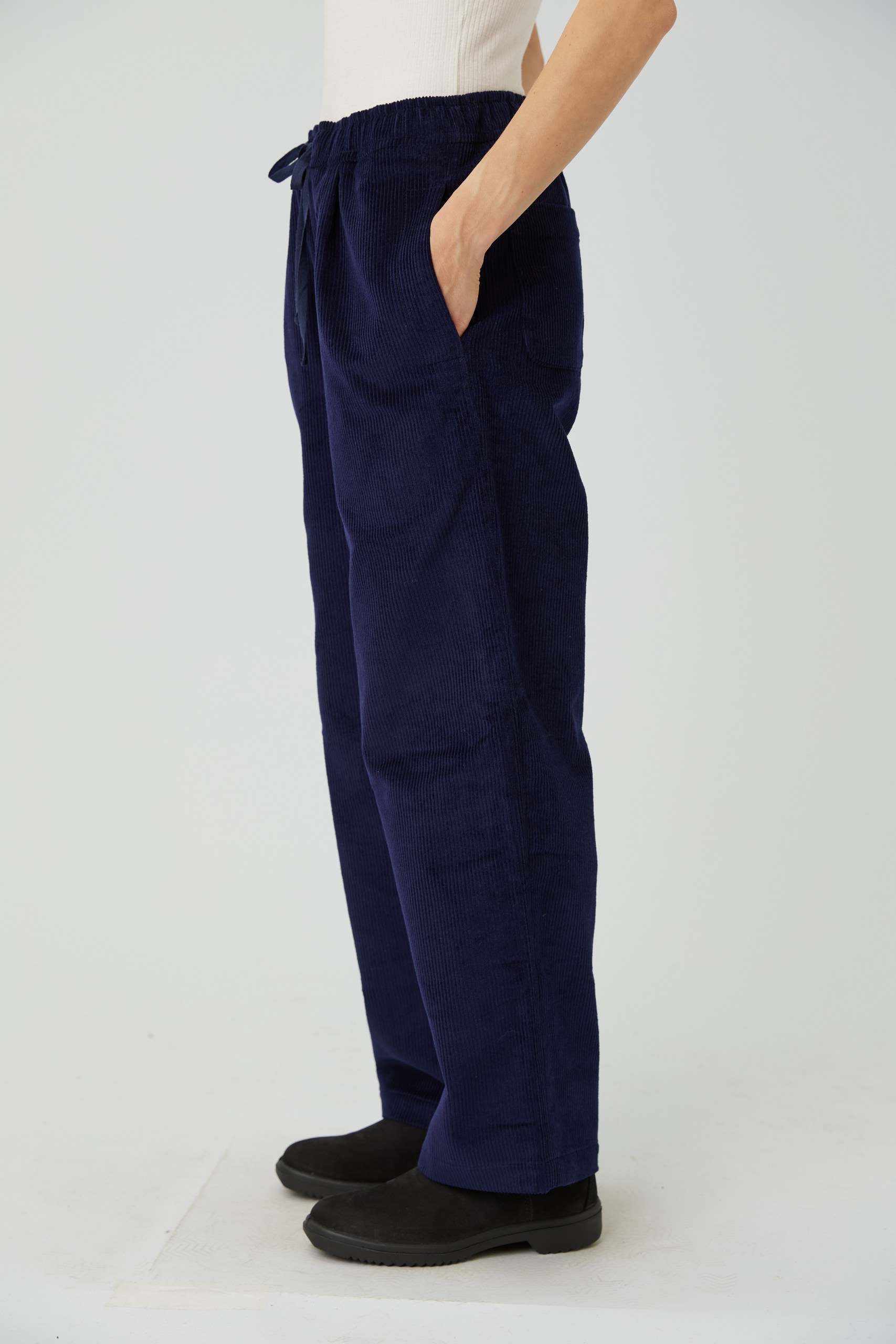 Брюки мужские из синего вельвета в рубчик