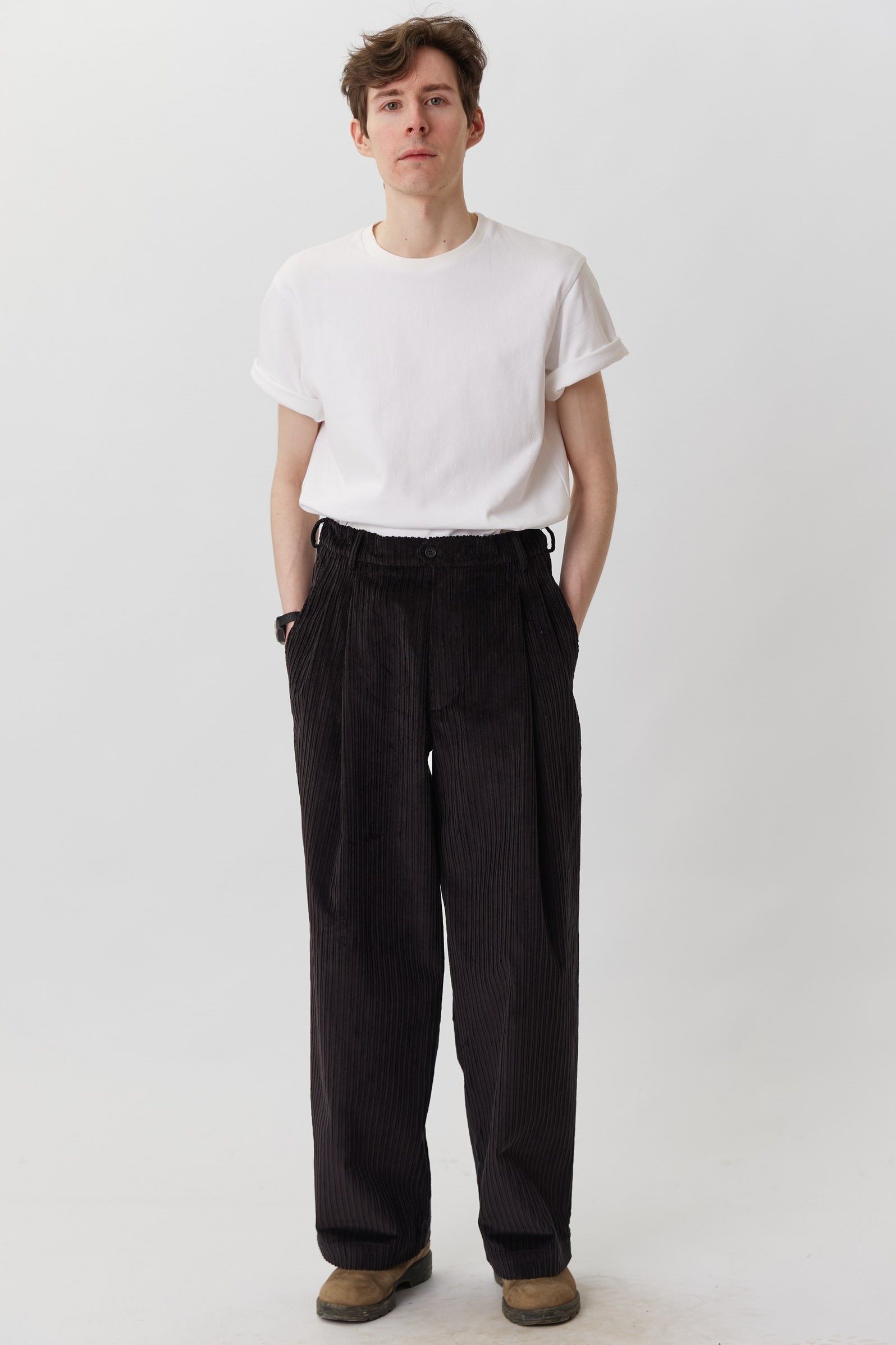 Брюки мужские со складками из черного вельвета
