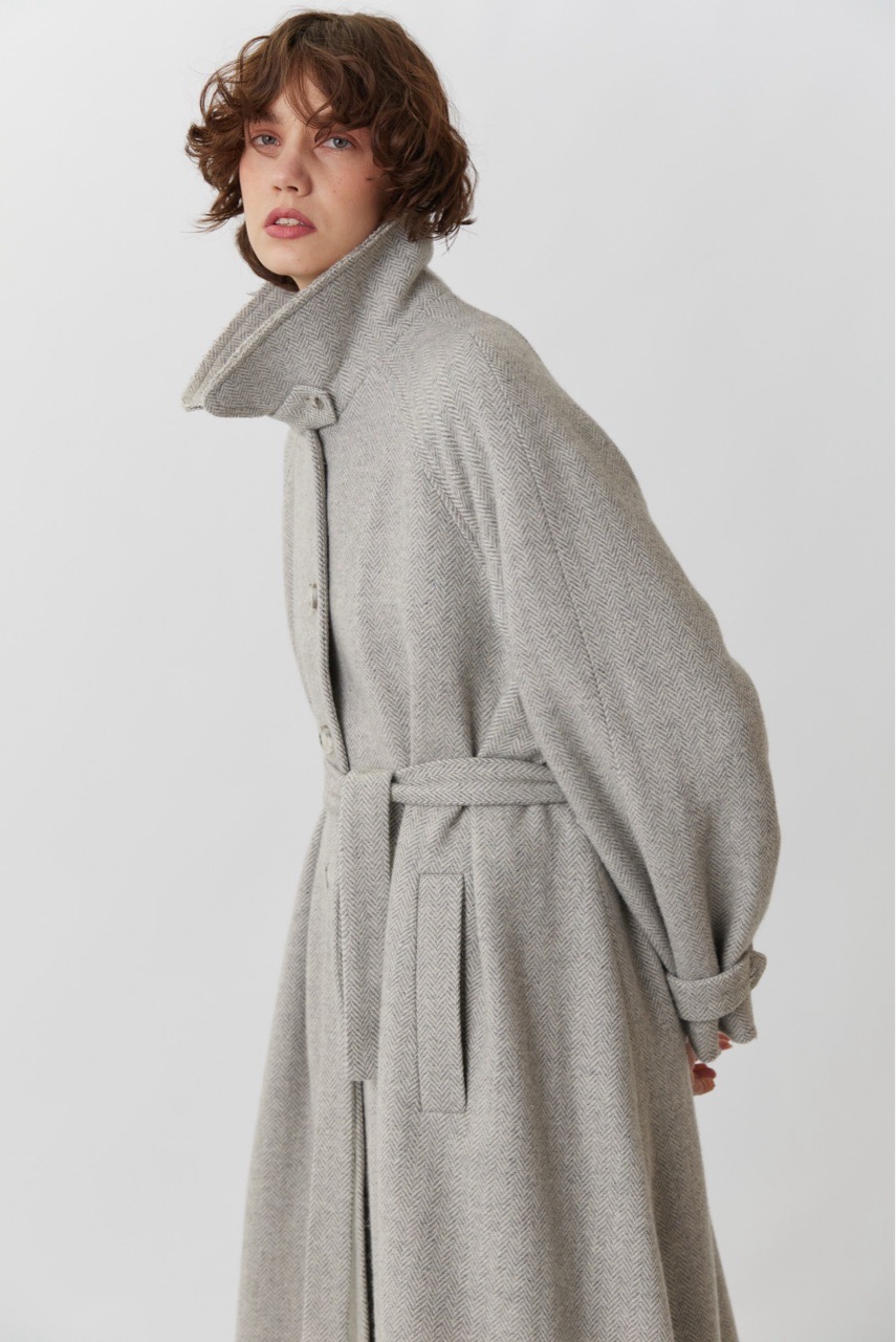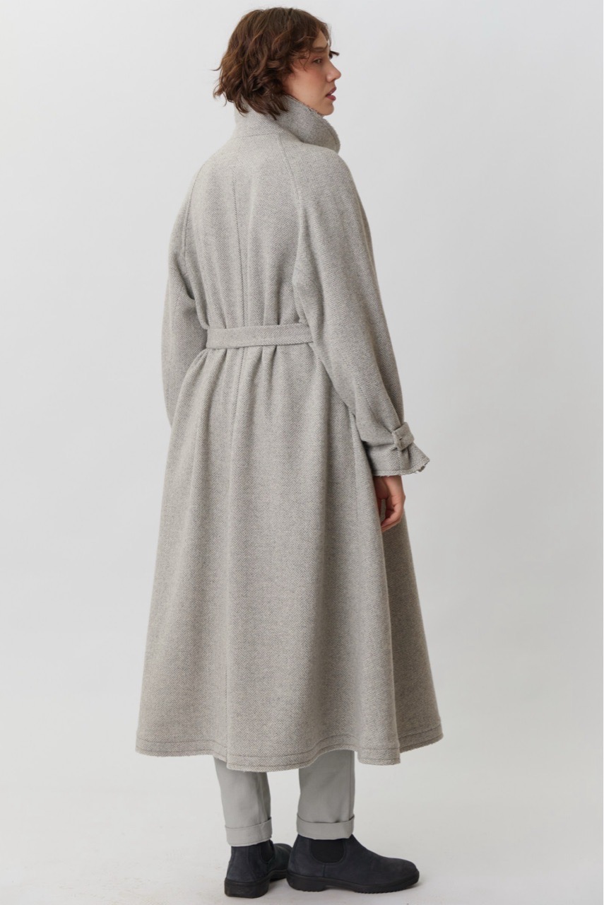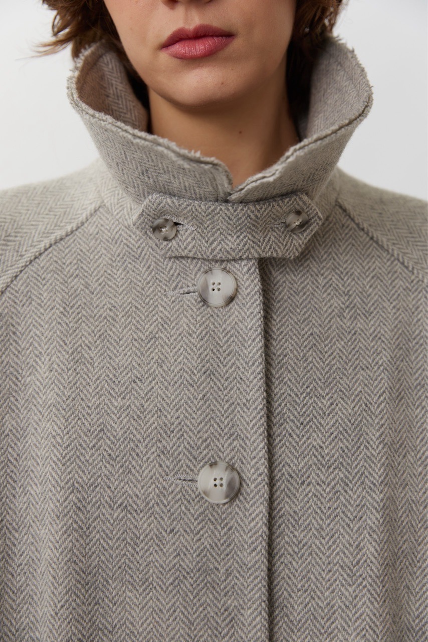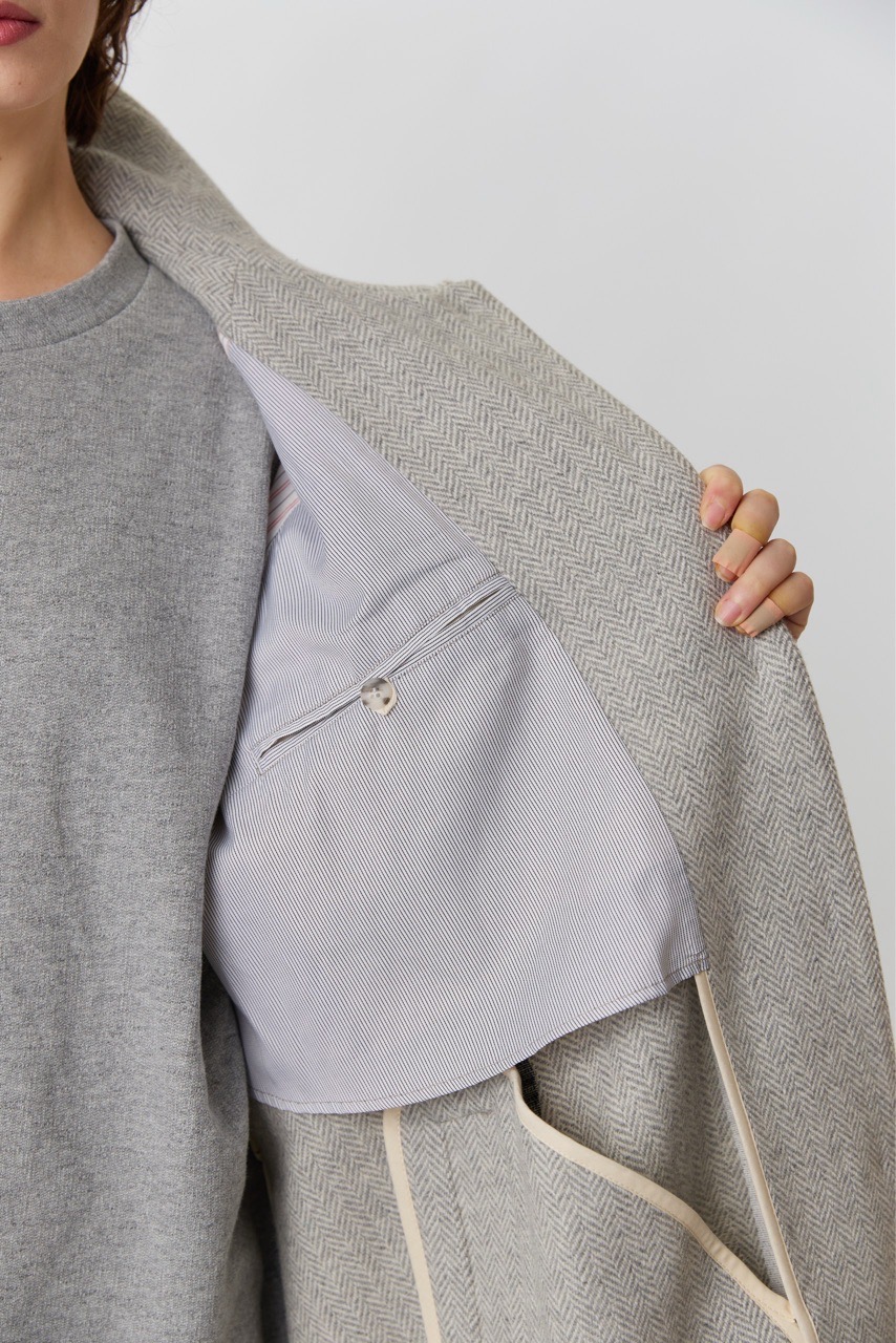 Объемное пальто светло-серого цвета в елочку