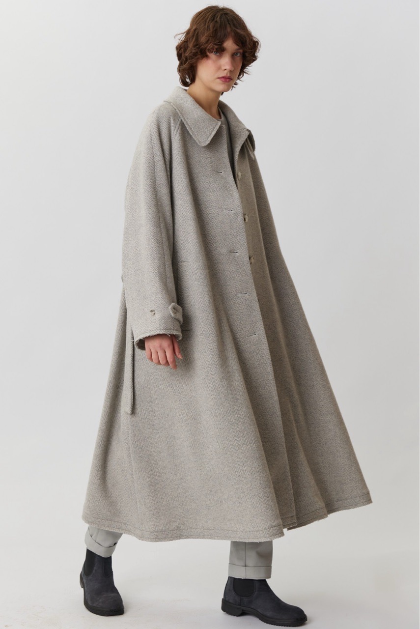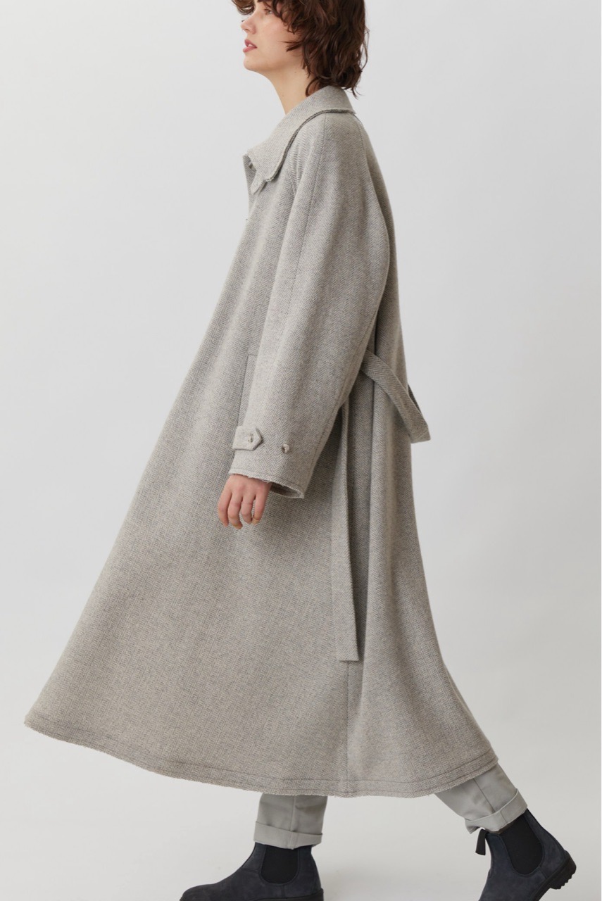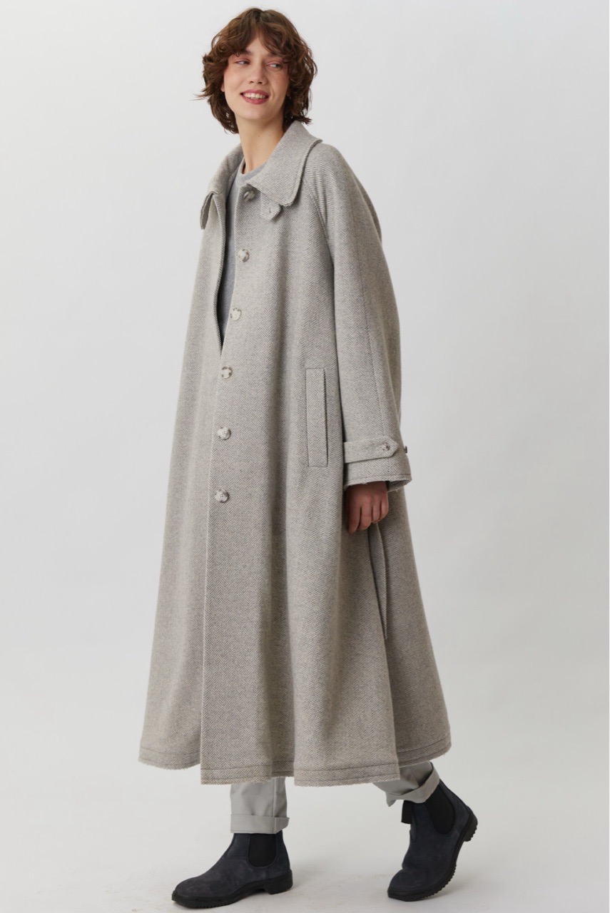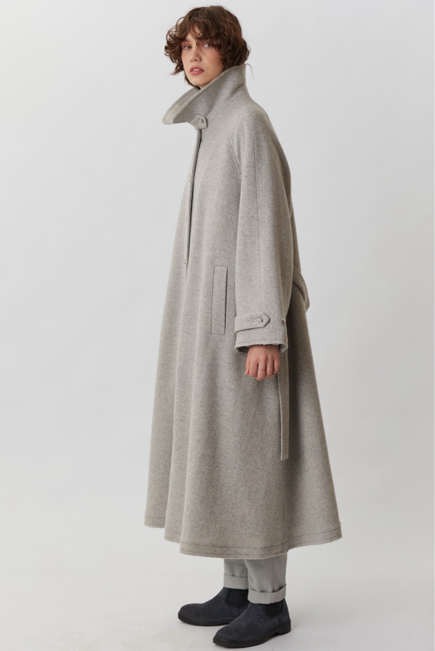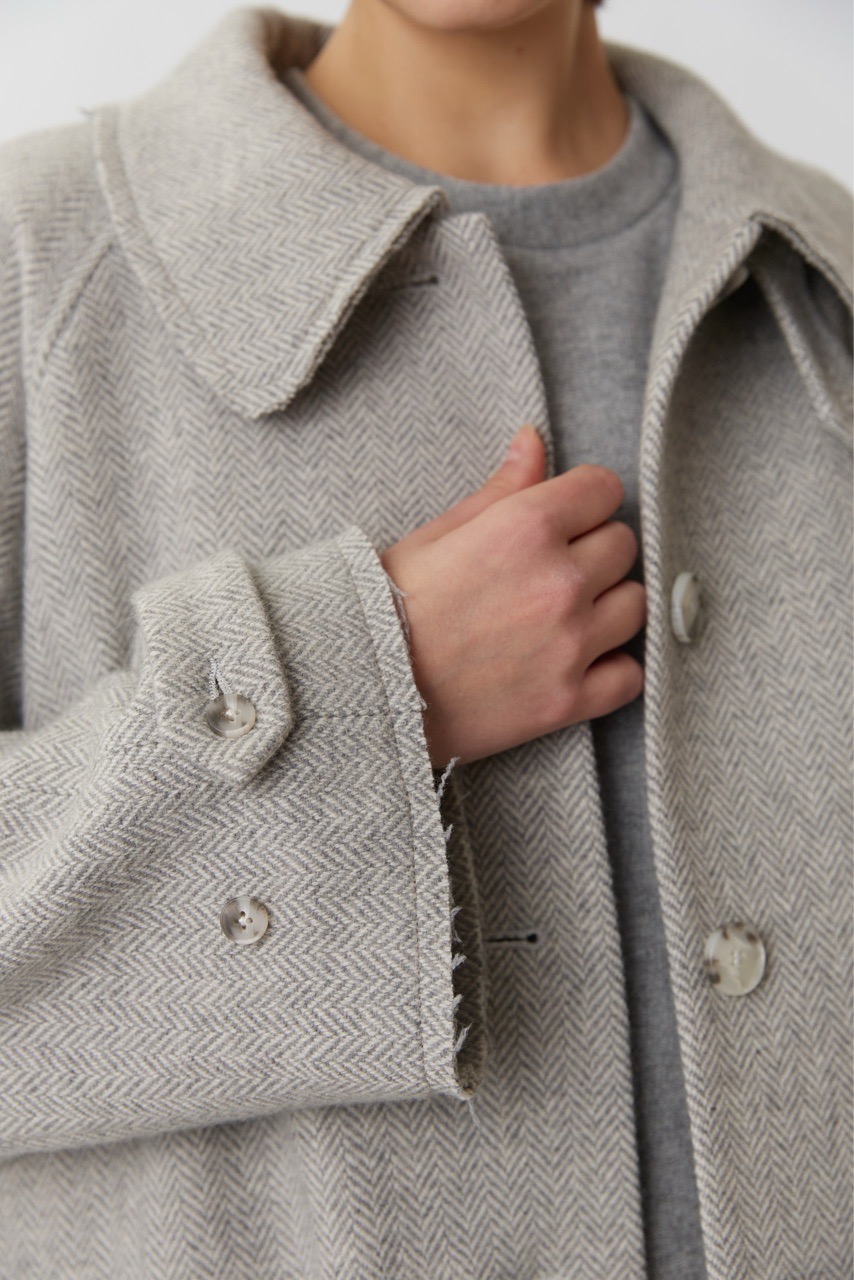Объемное пальто светло-серого цвета в елочку