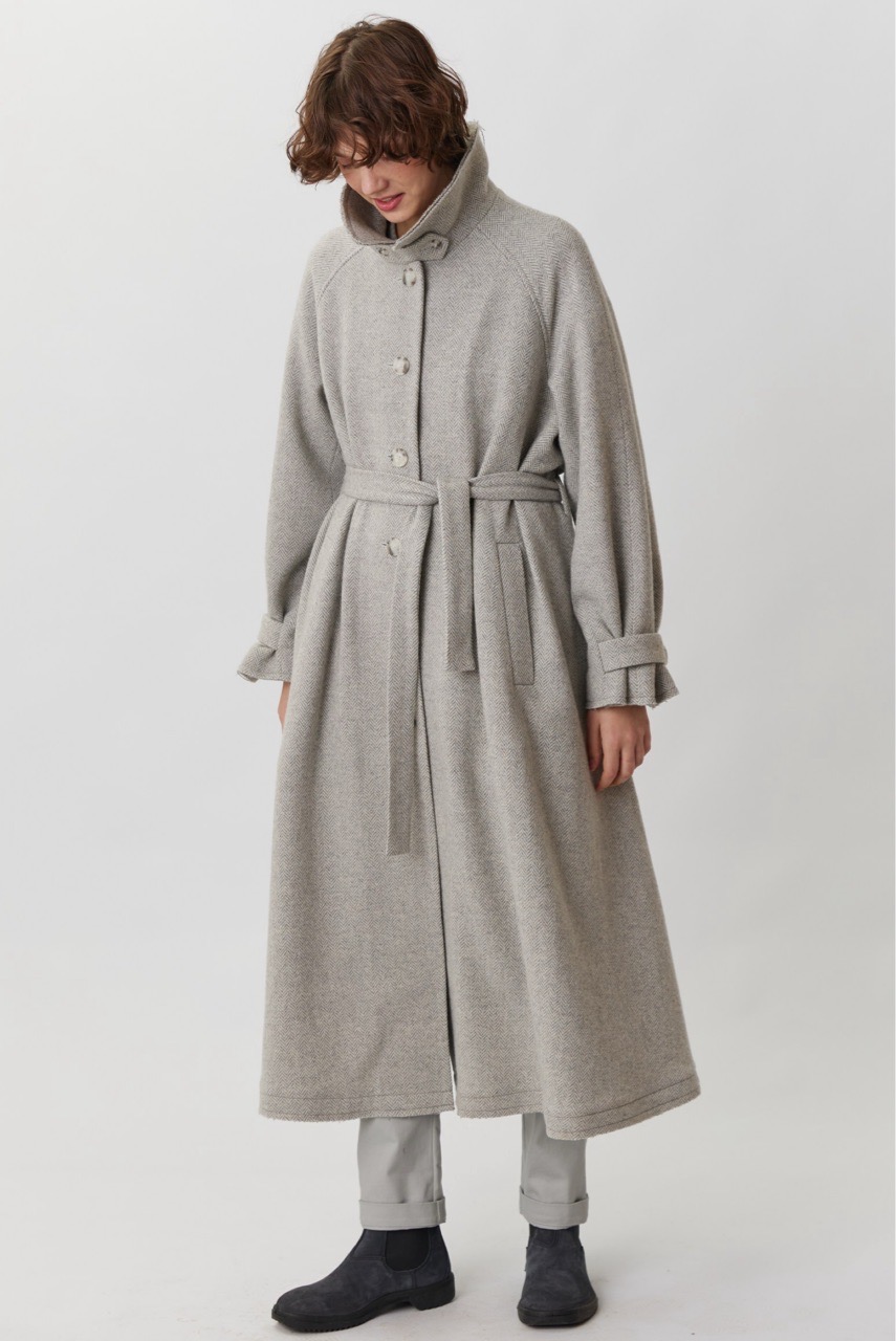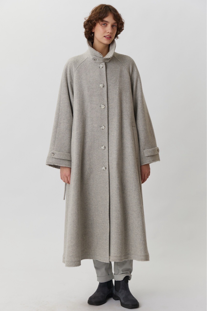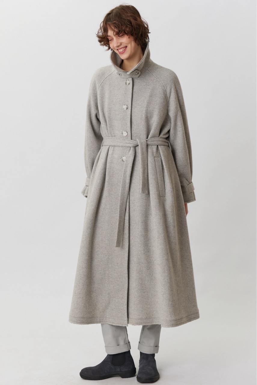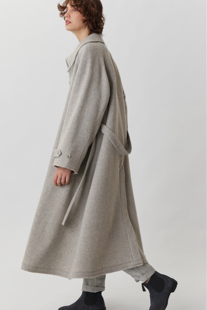 Объемное пальто светло-серого цвета в елочку