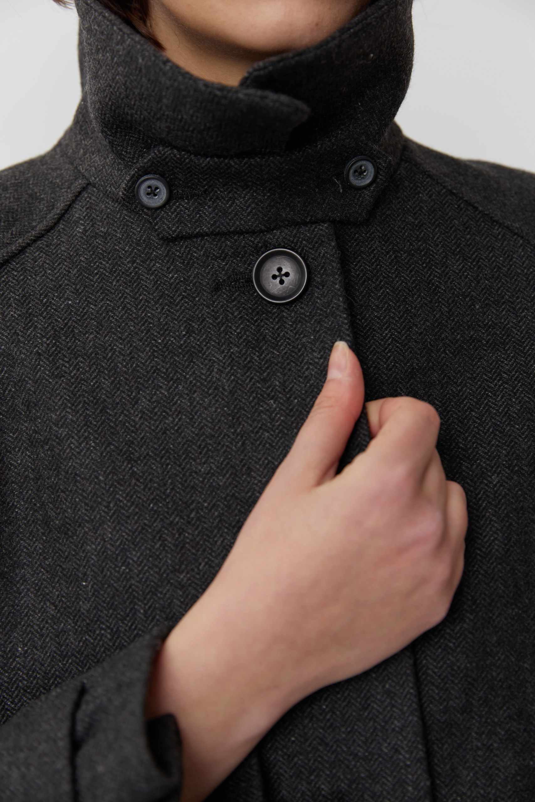 Параметры модели: 84-63-92, рост 177 см. Размер пальто М