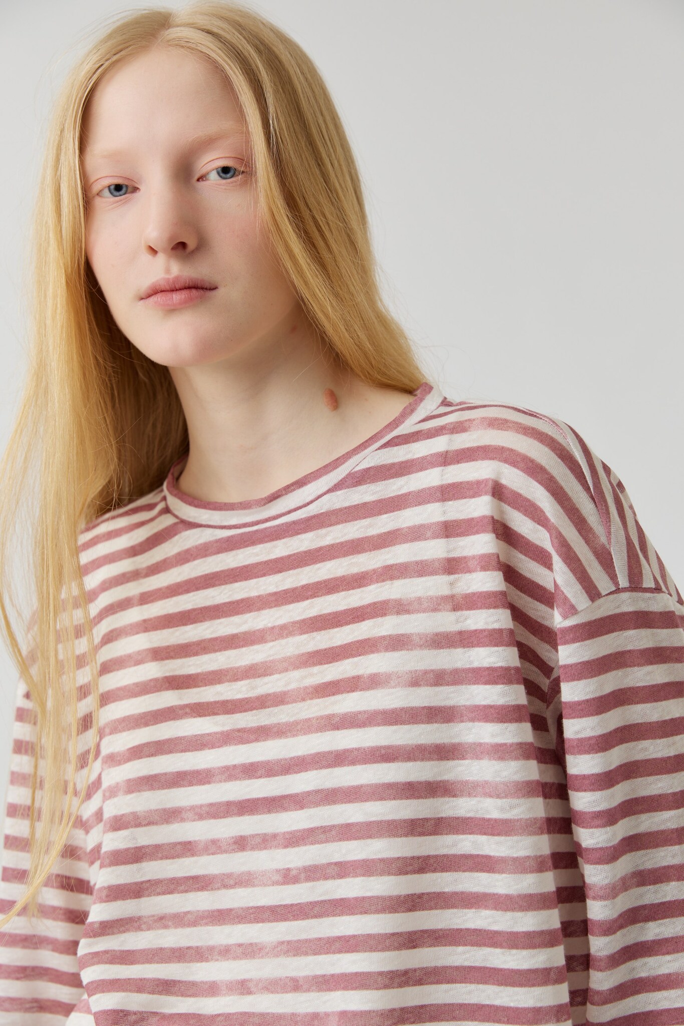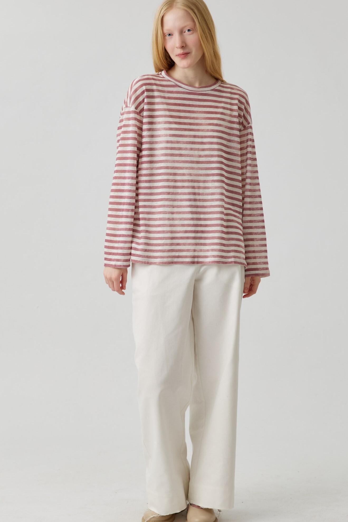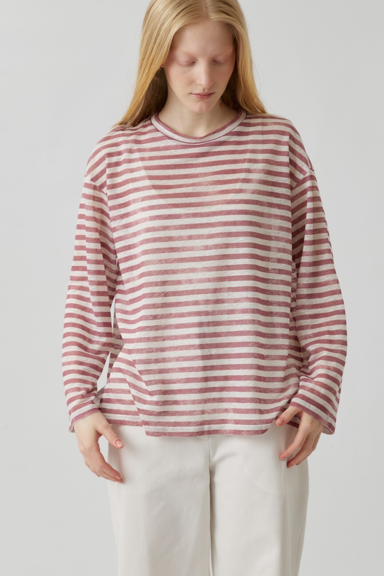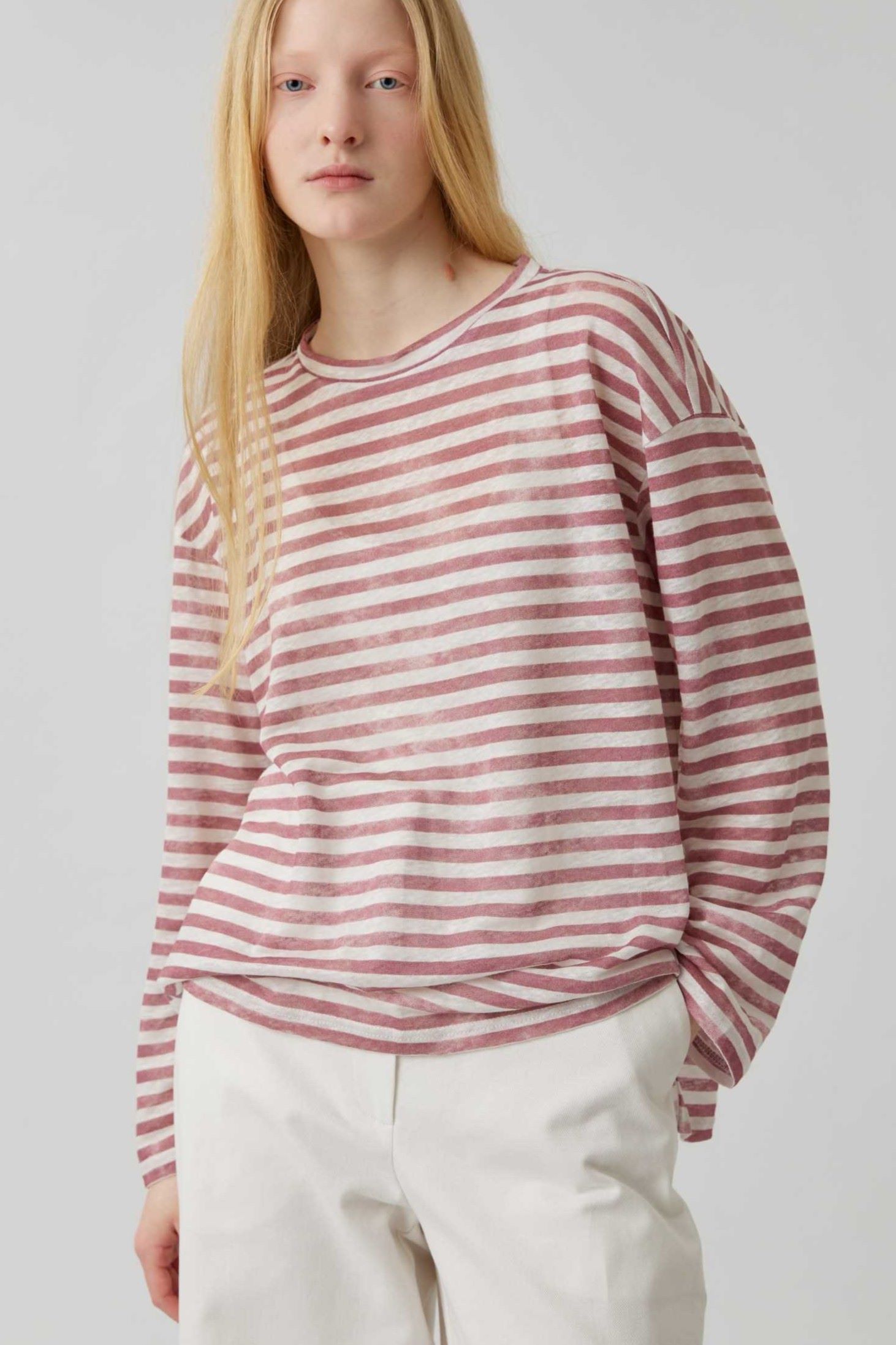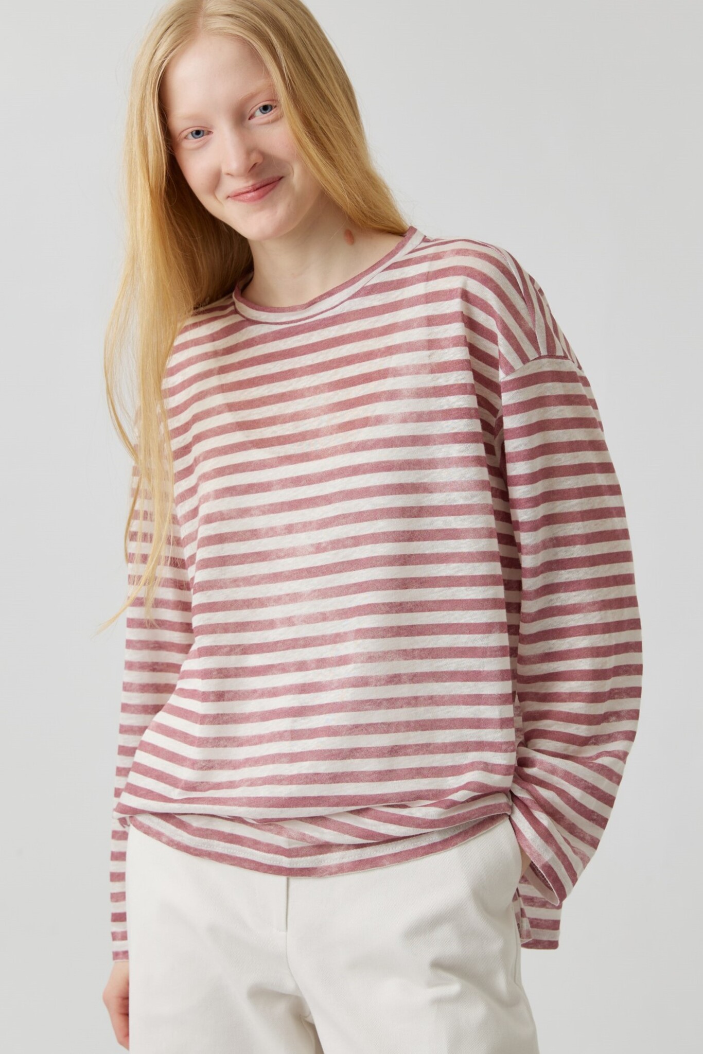 Топ с разрезами в розовую полоску из льна