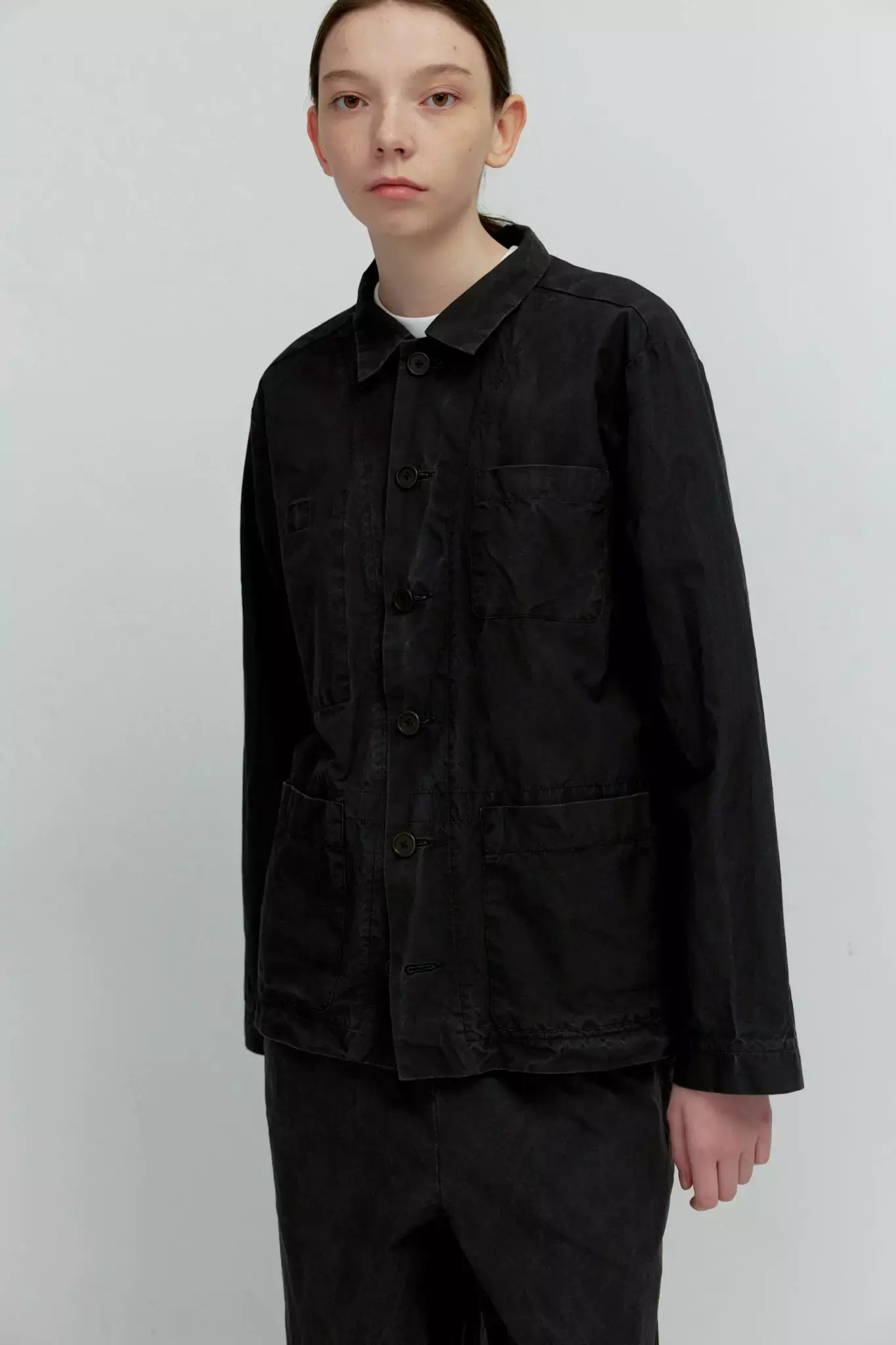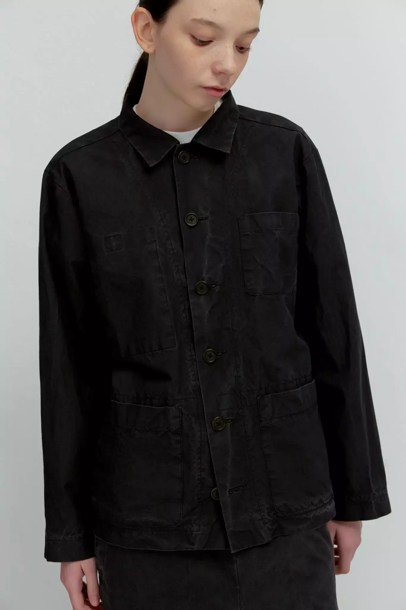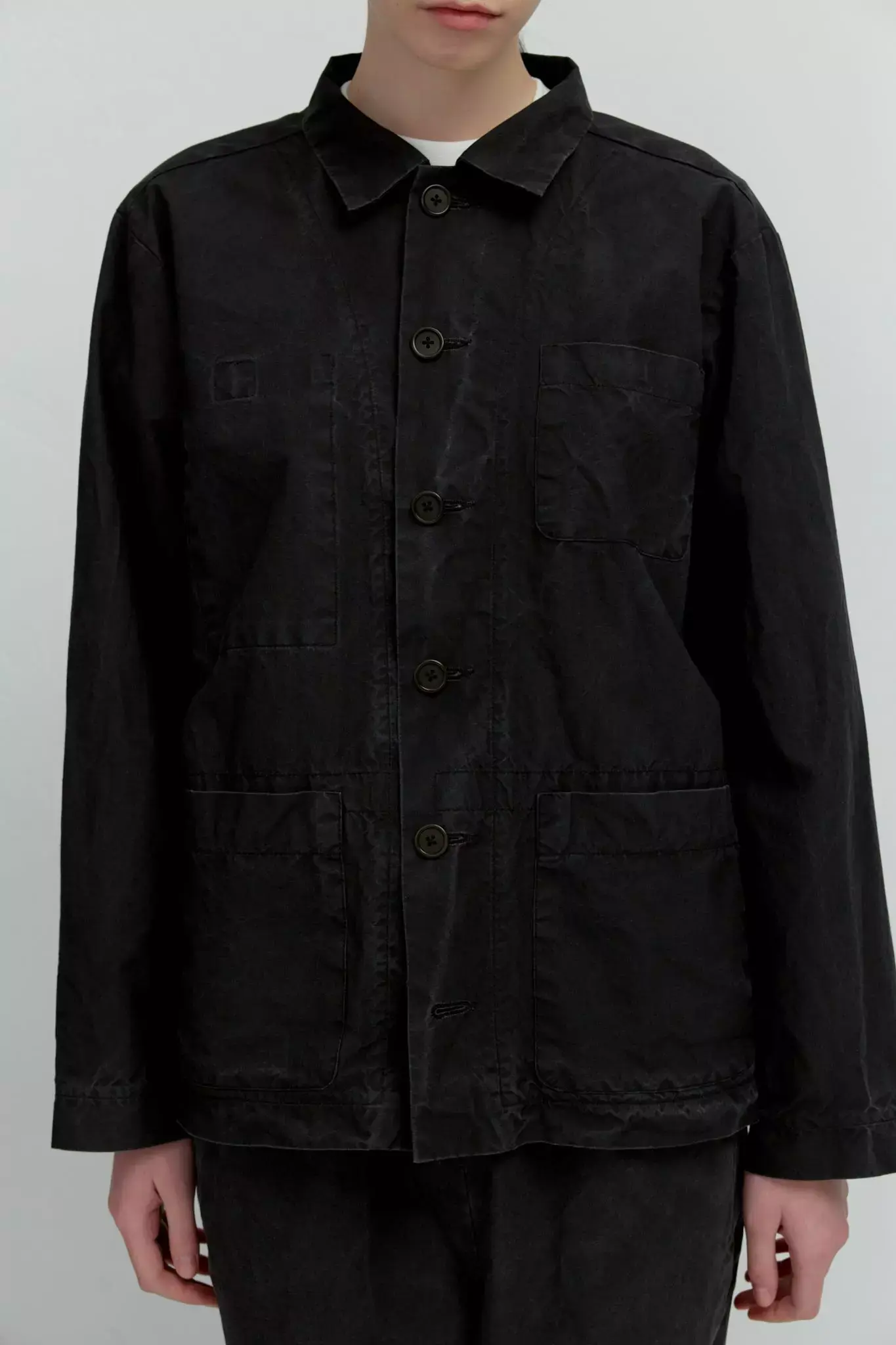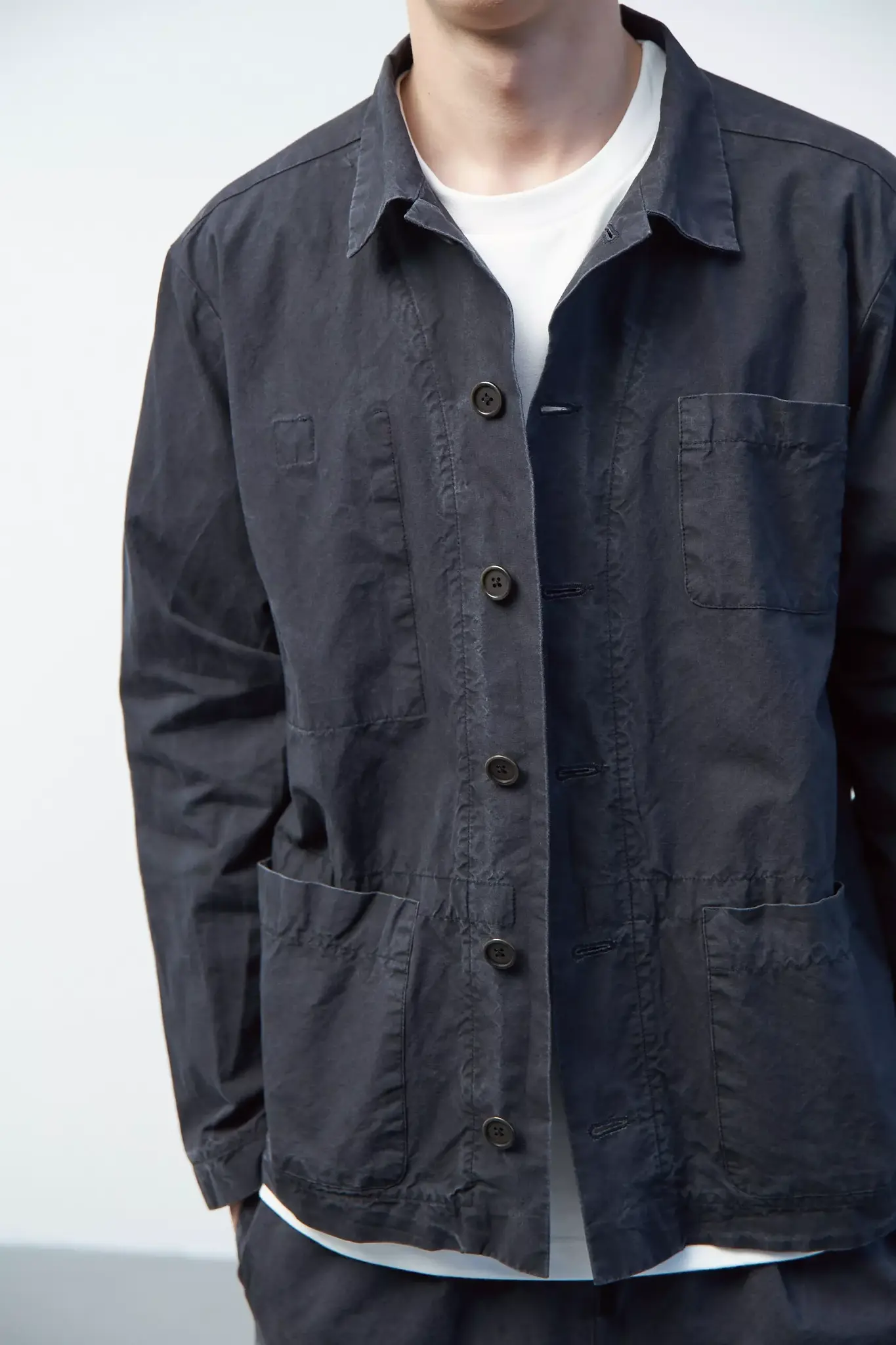 Верхняя мужская рубашка с карманами из черного вареного хлопка