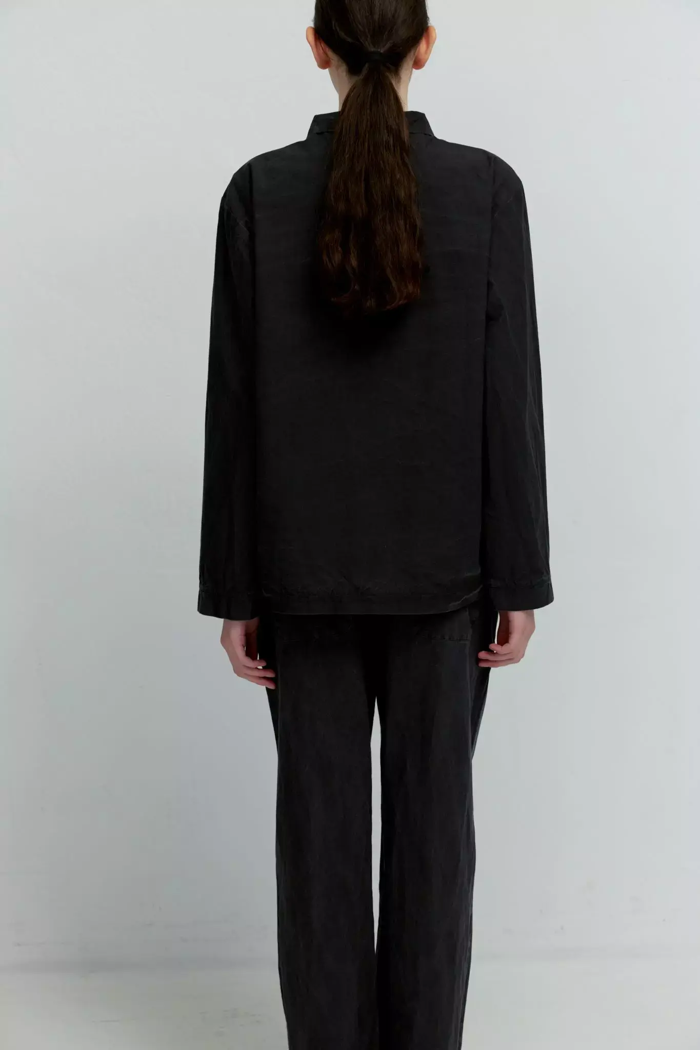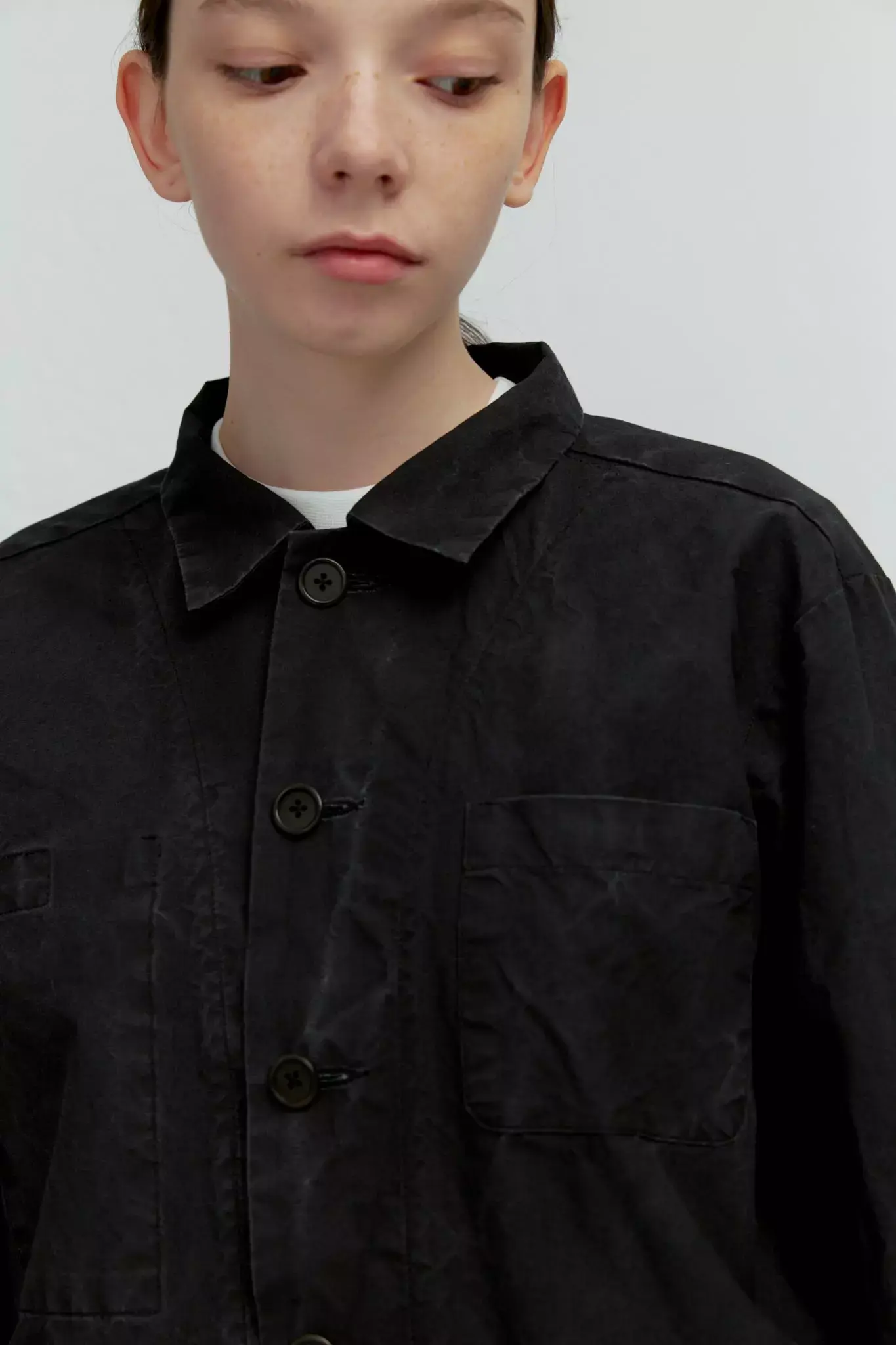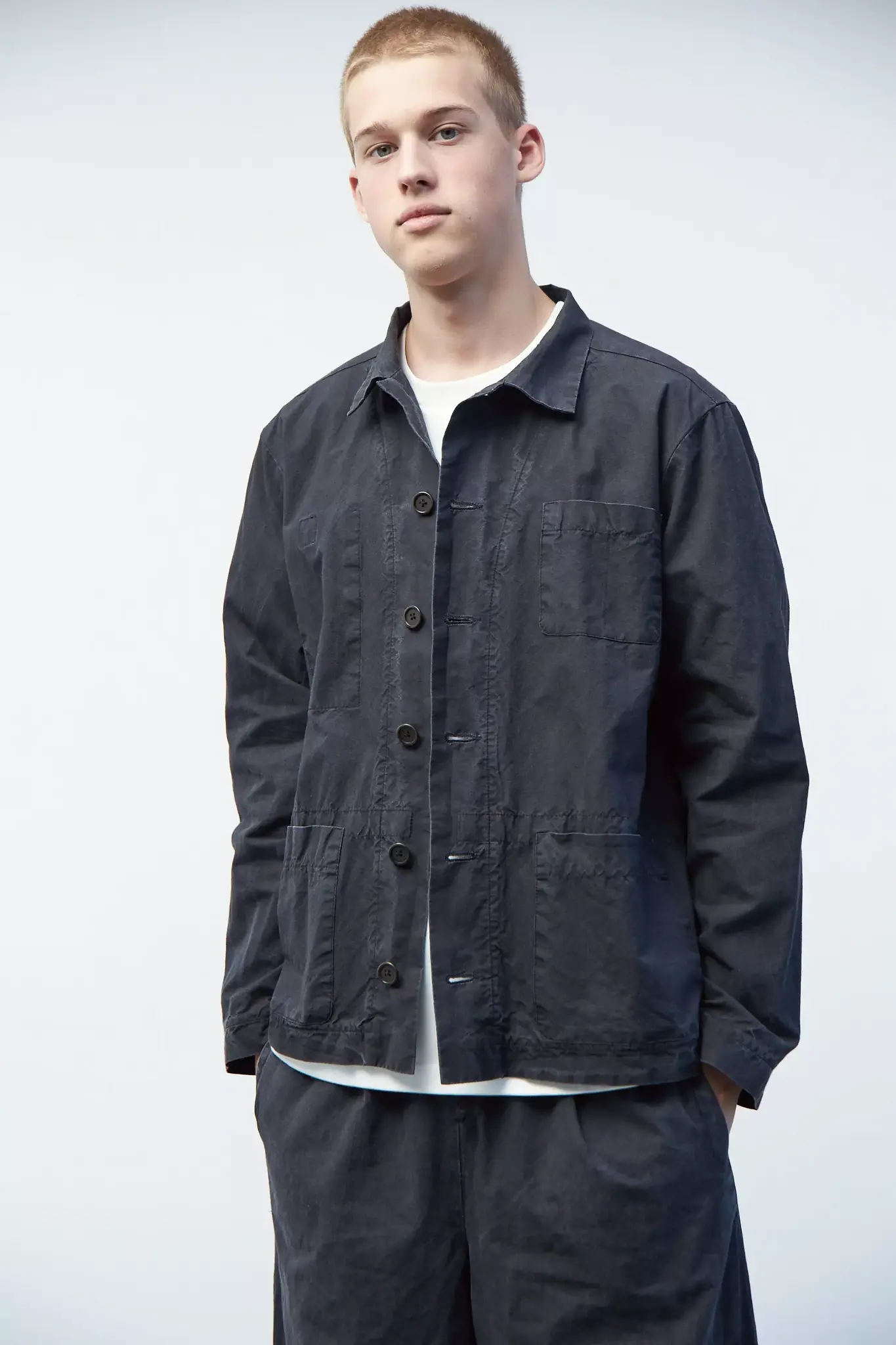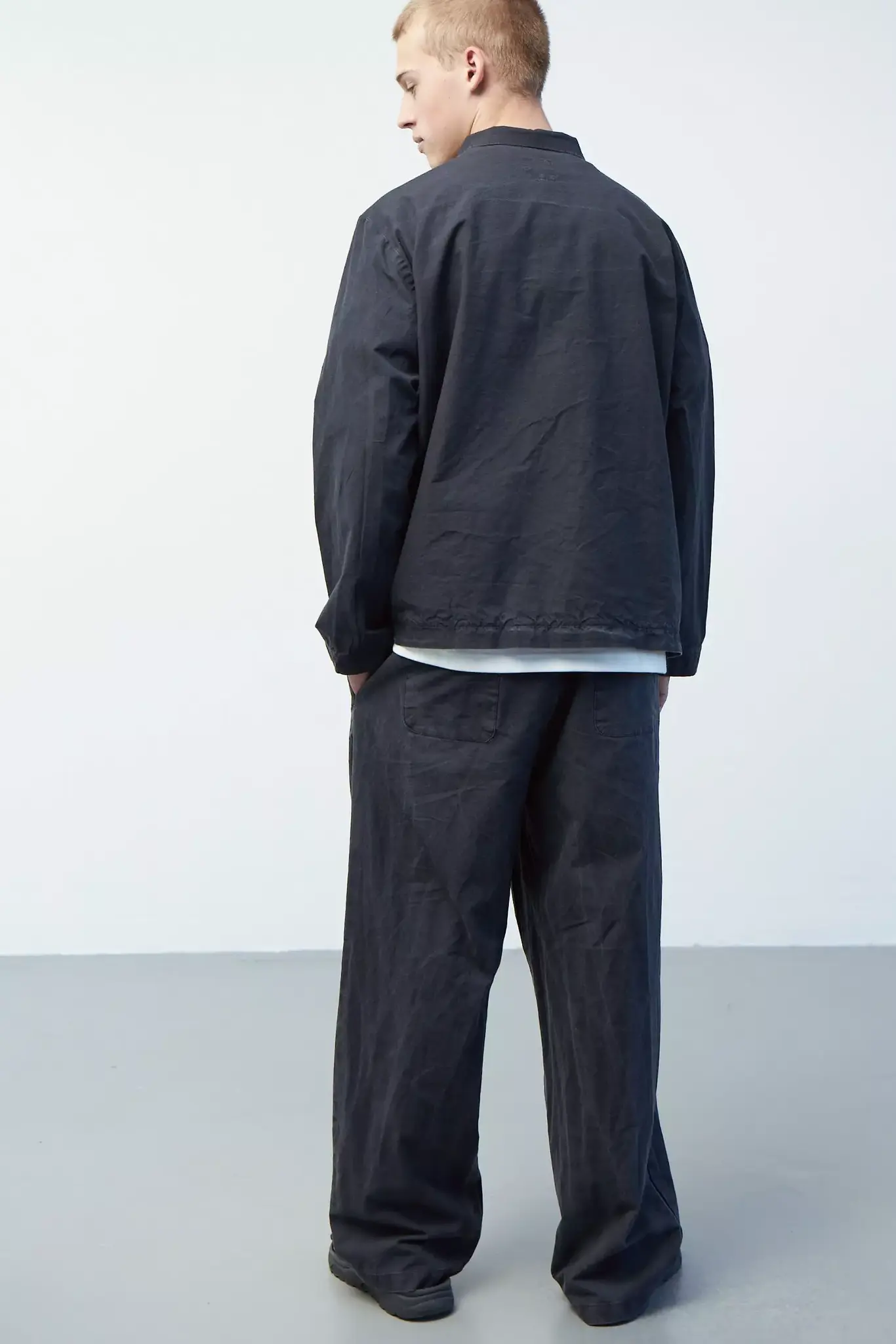 Верхняя мужская рубашка с карманами из черного вареного хлопка