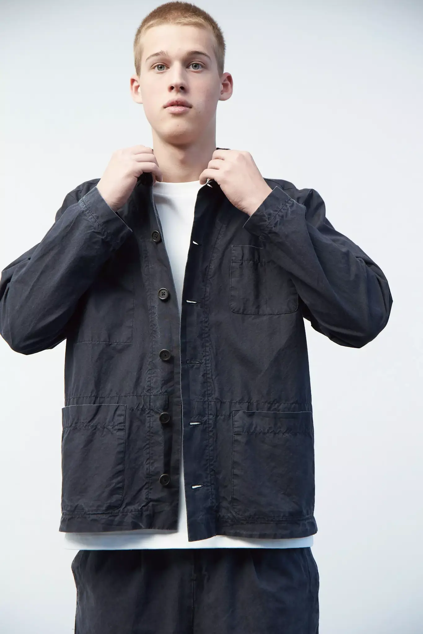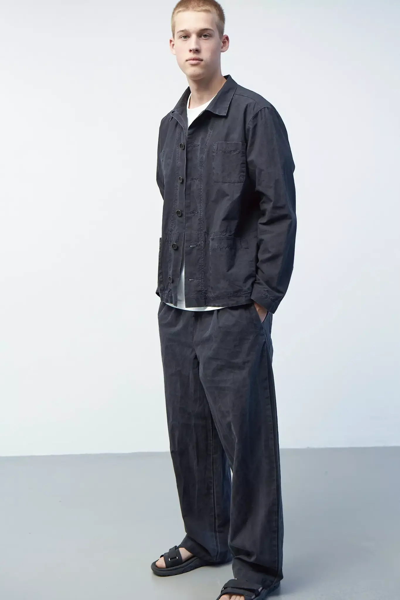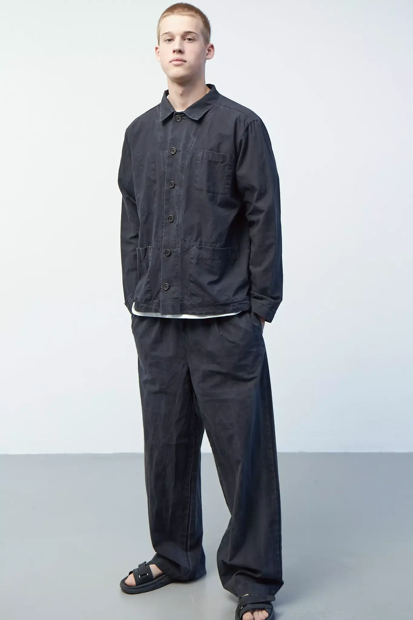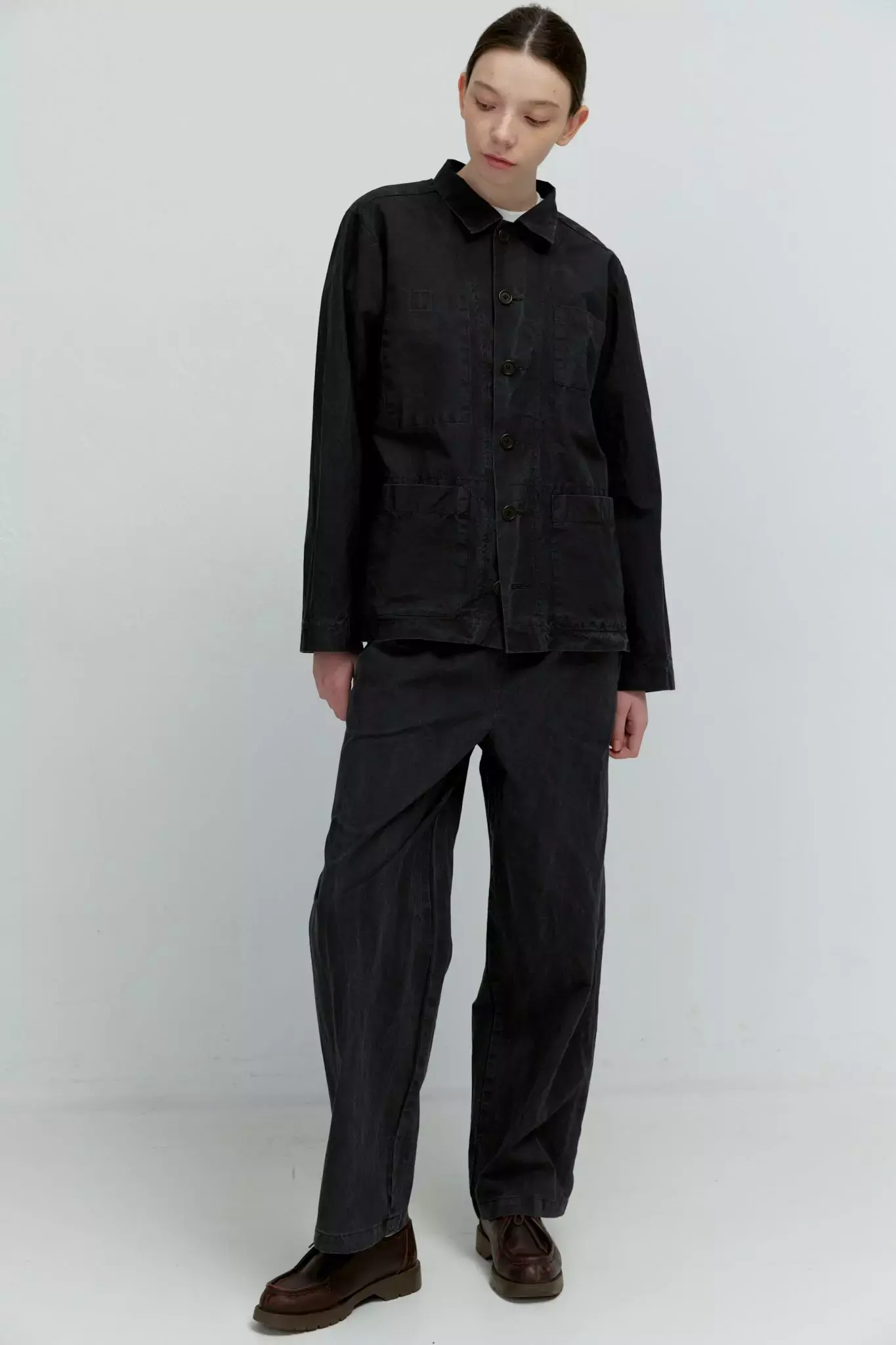 Верхняя мужская рубашка с карманами из черного вареного хлопка