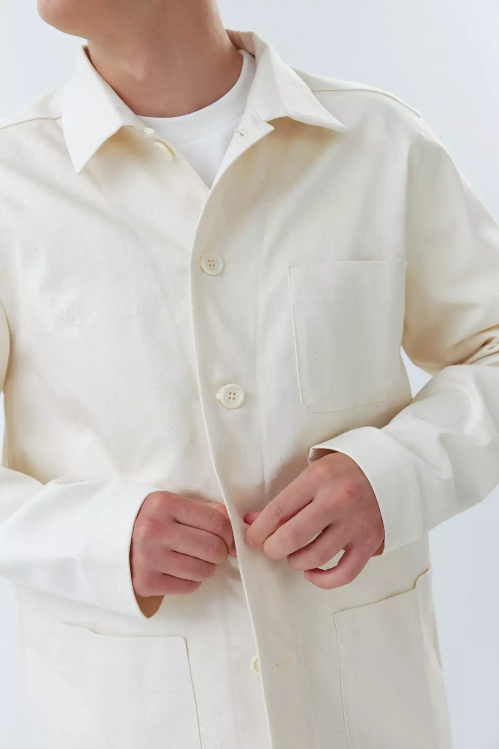 Верхняя мужская рубашка с карманами молочного цвета