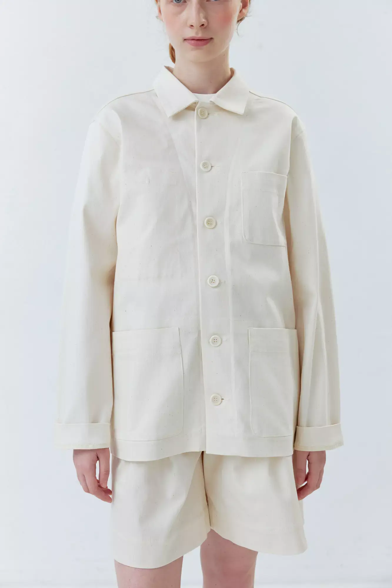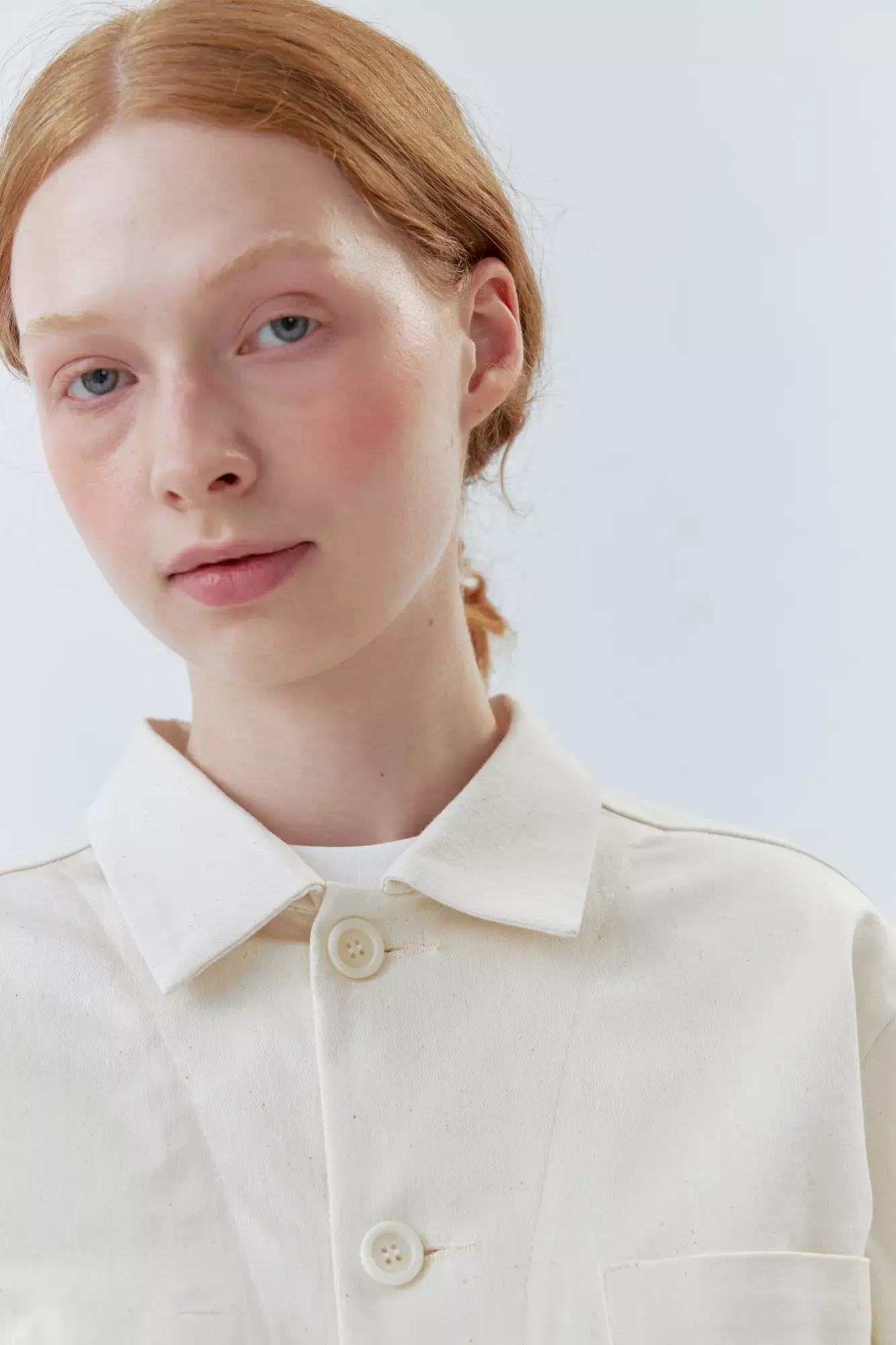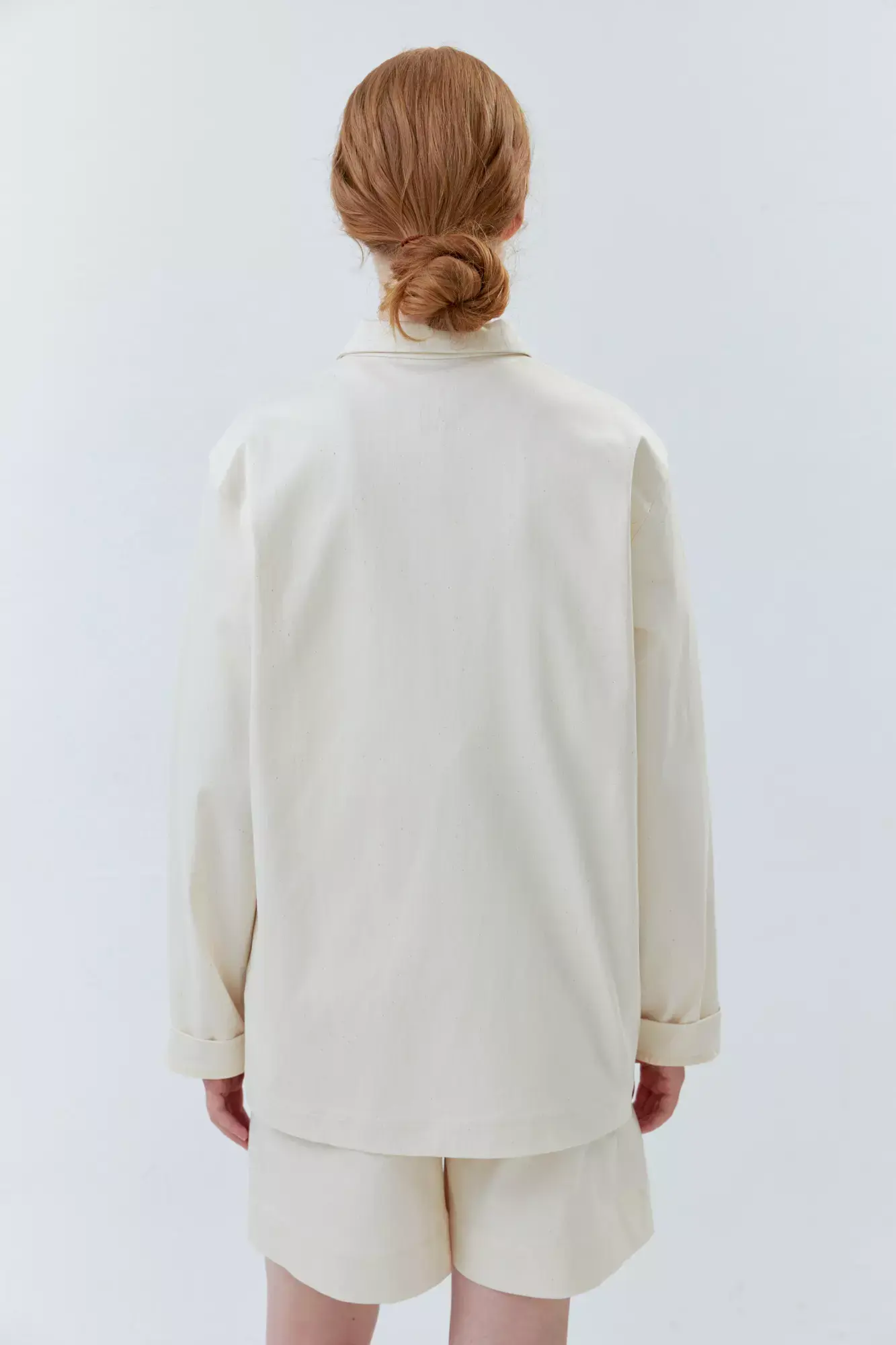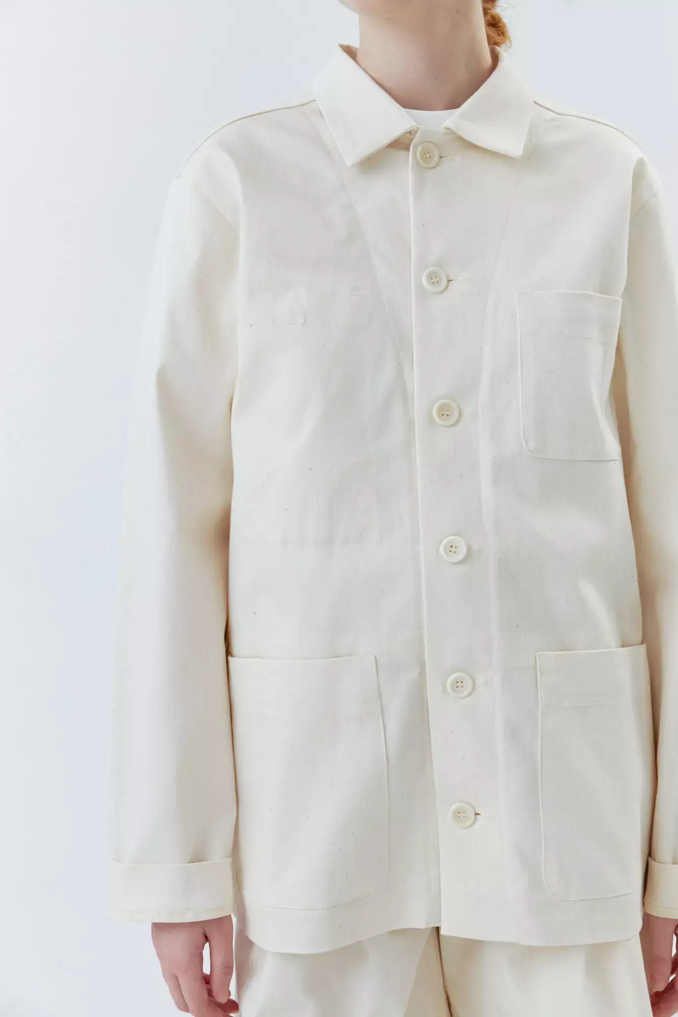 Верхняя мужская рубашка с карманами молочного цвета