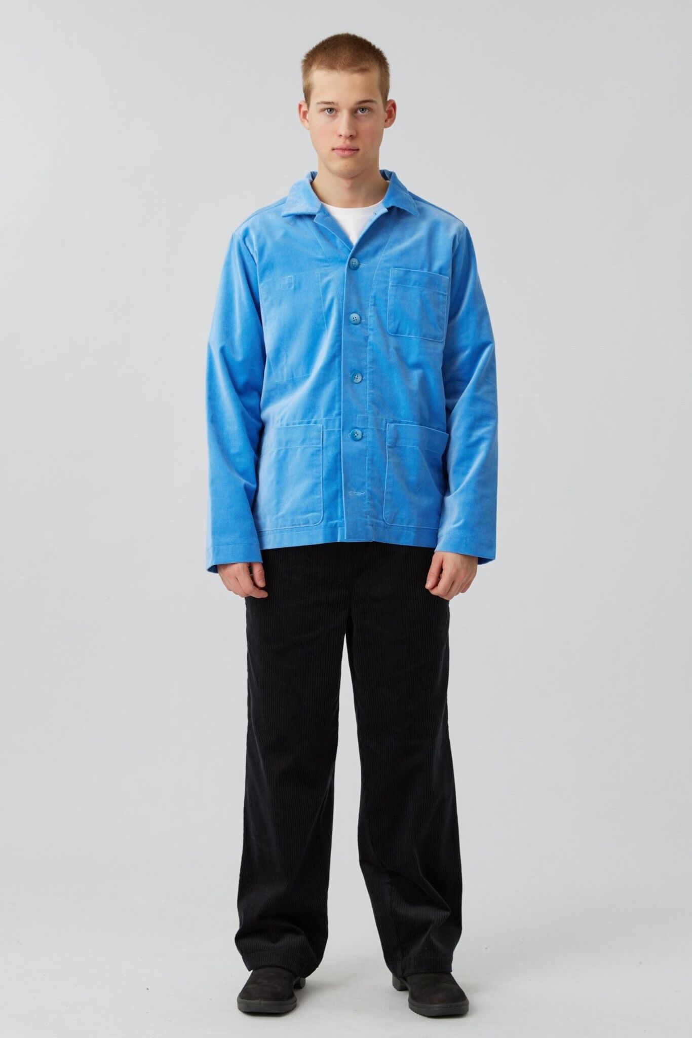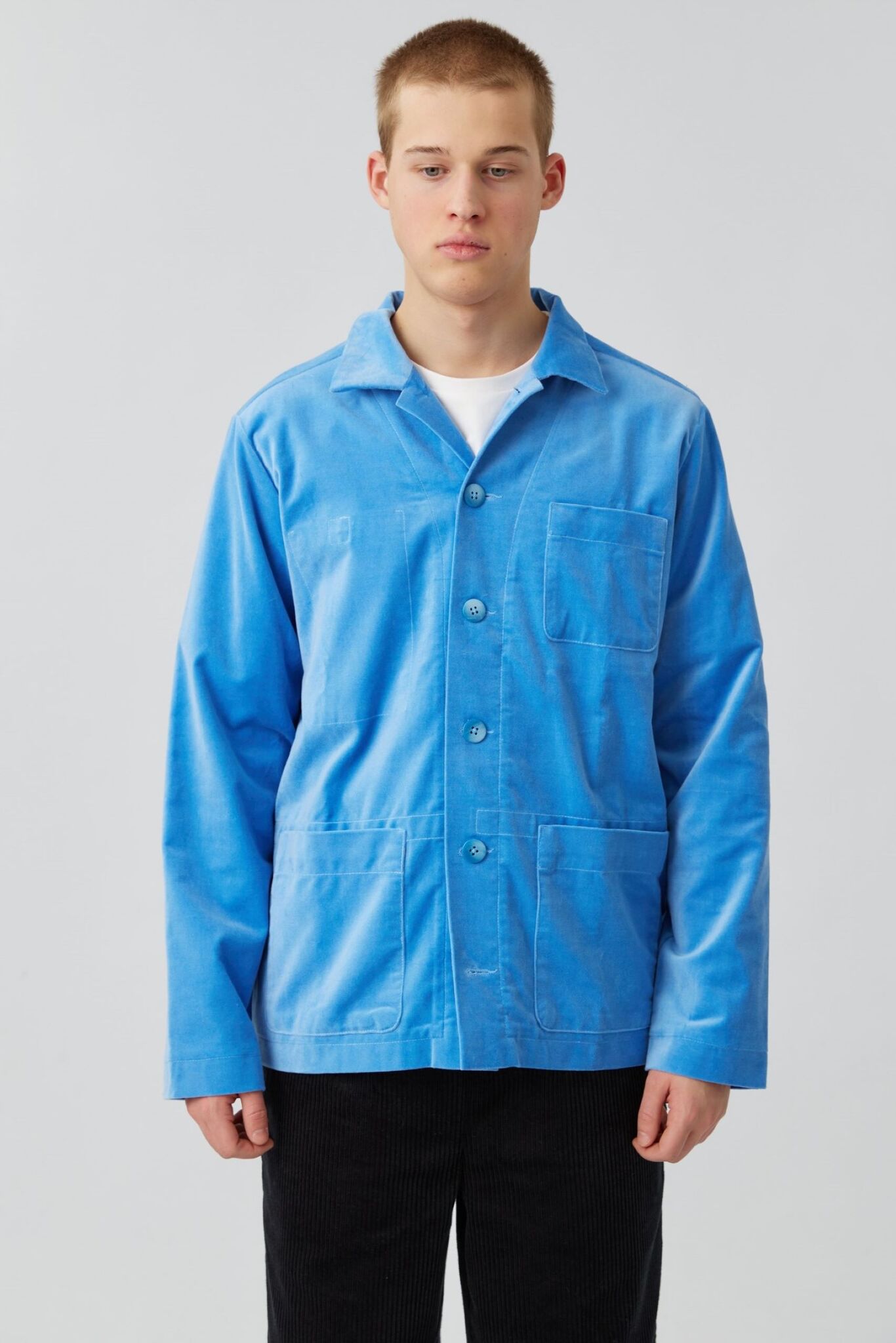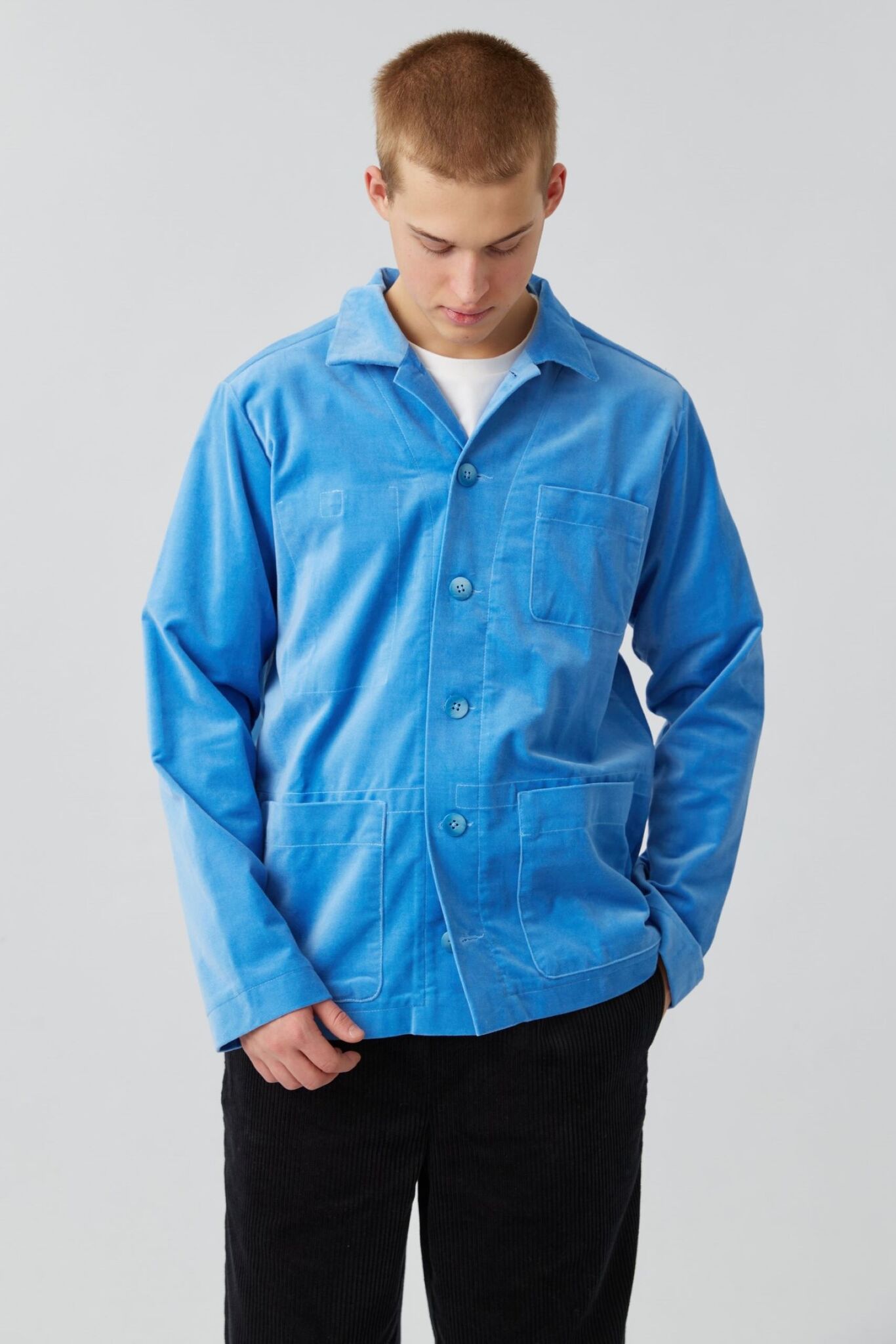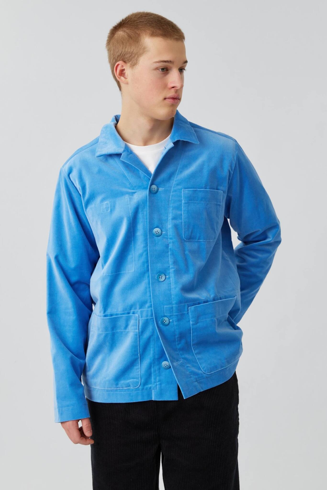Верхняя рубашка с карманами из голубого бархата