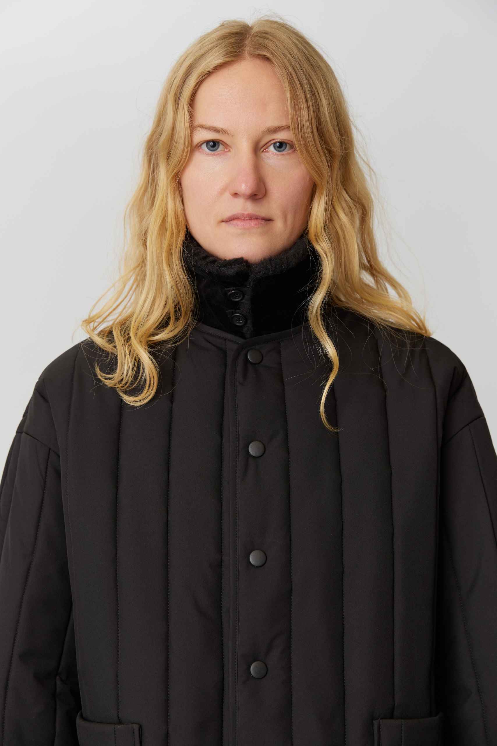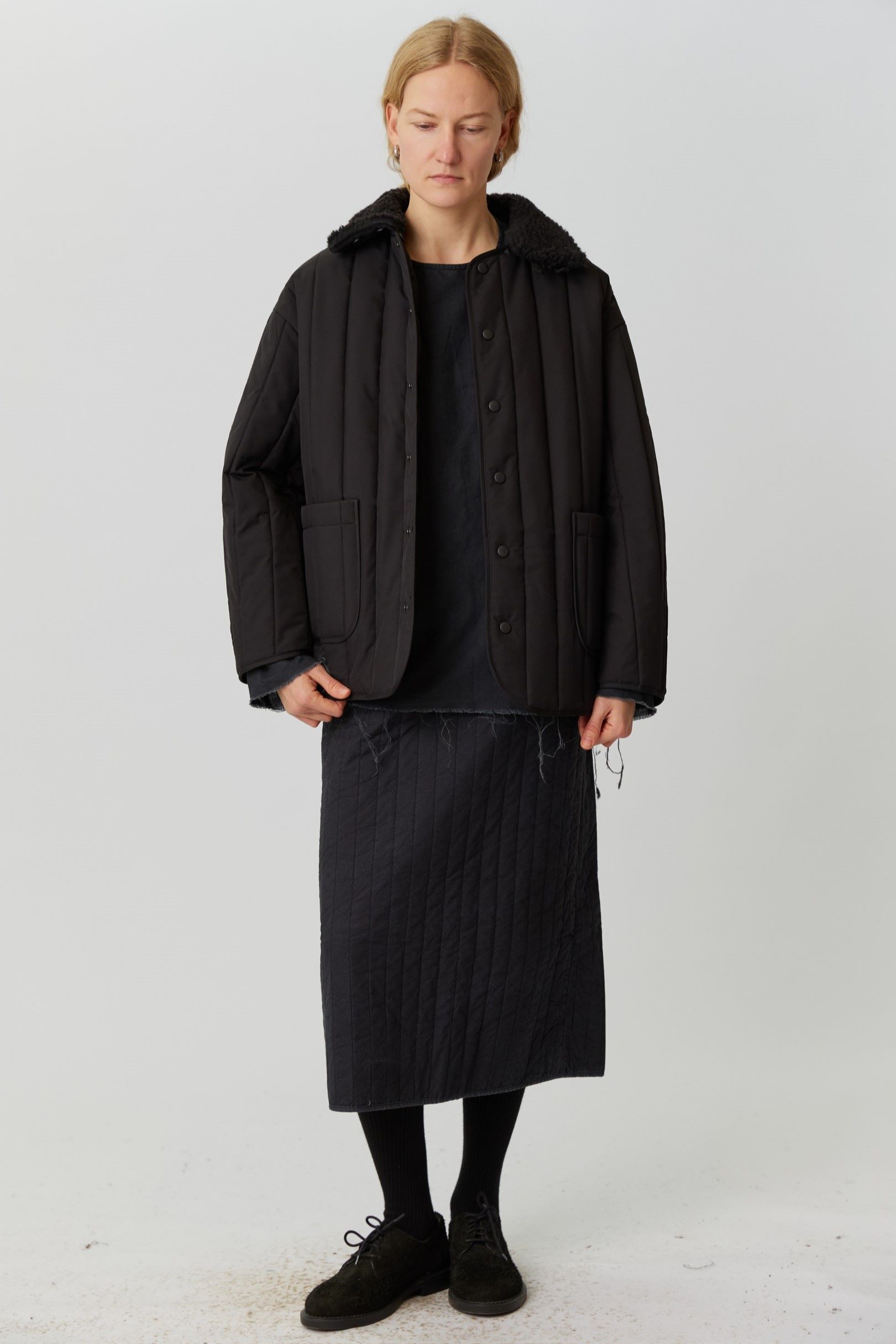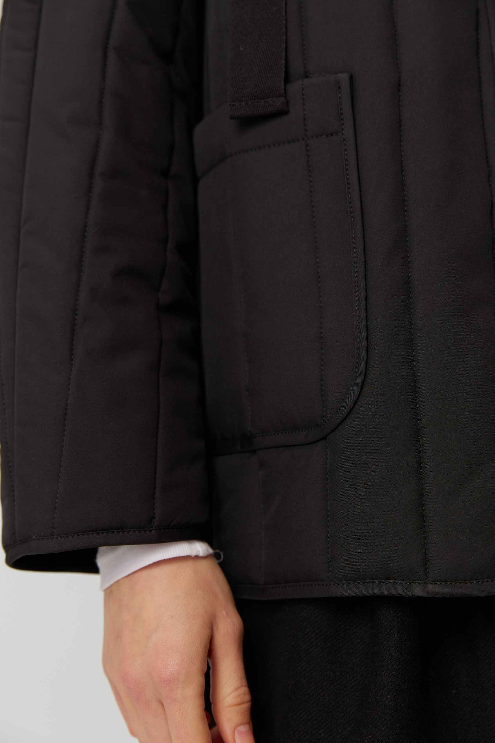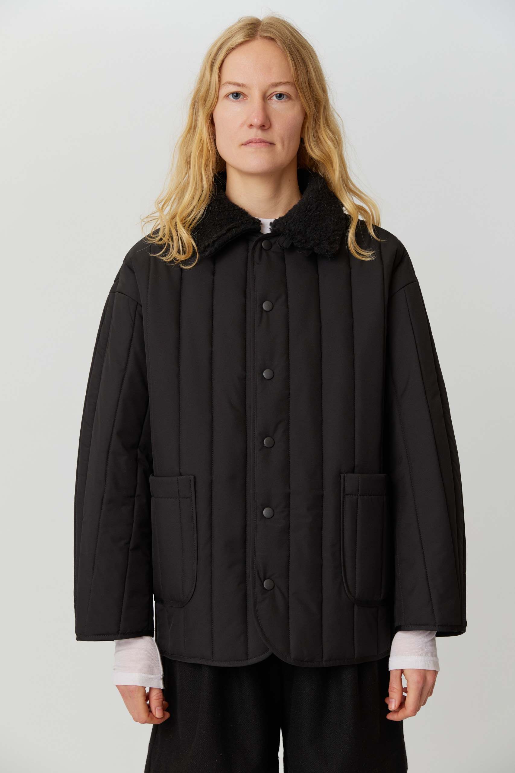 Рекомендуем выбирать свой привычный размер или на размер больше для более свободной посадки. Параметры модели: 86-68-90, рост 174. Размер куртки М(46)