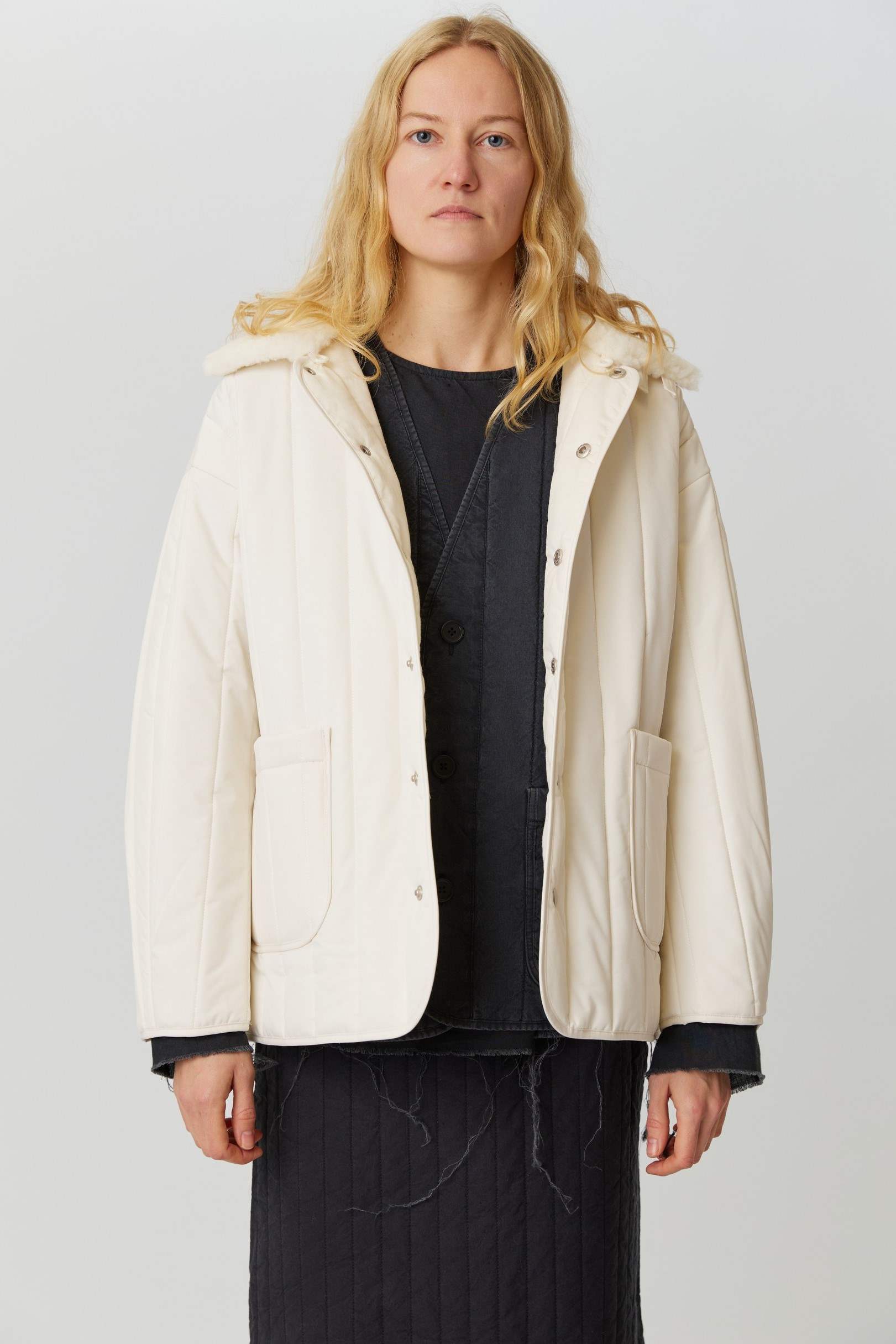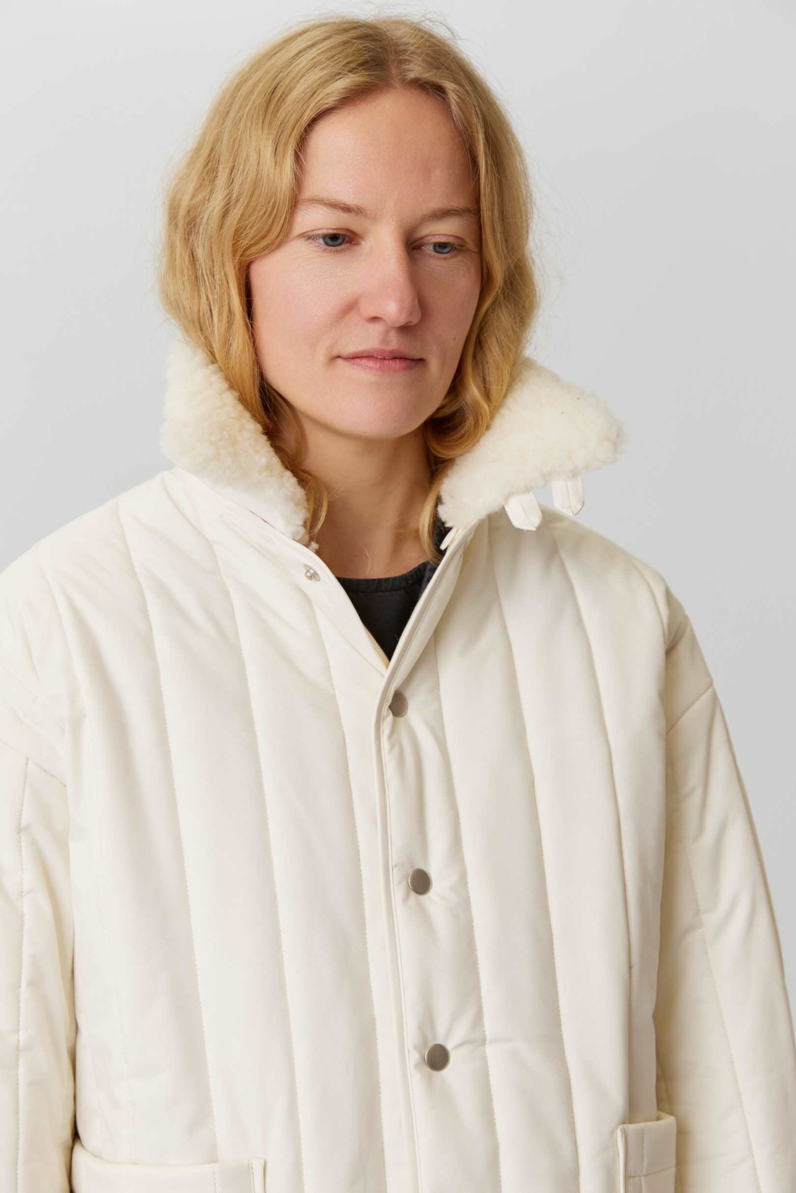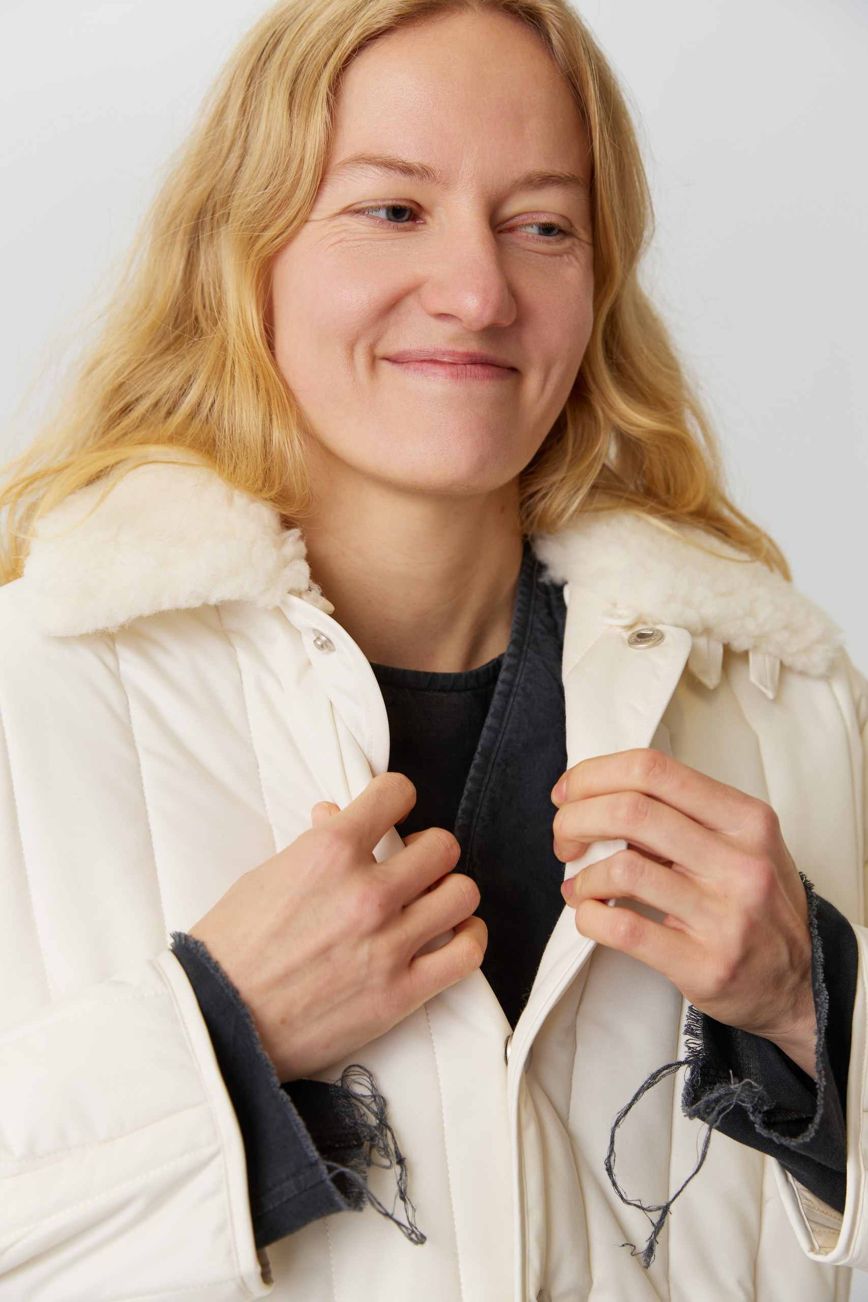 Рекомендуем выбирать свой привычный размер или на размер больше для более свободной посадки. Параметры модели: 86-68-90, рост 174. Размер куртки М(46)